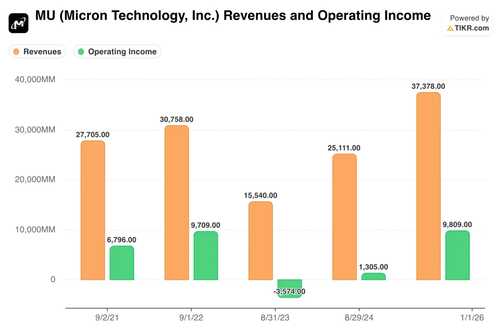 That demand is being driven by data center buildouts and the increasing need for high-performance memory. DRAM and high-bandwidth memory remain the key products benefiting from this trend. As a result, Micron is seeing both stronger pricing and higher volumes, which is driving the sharp recovery in revenue and profitability.