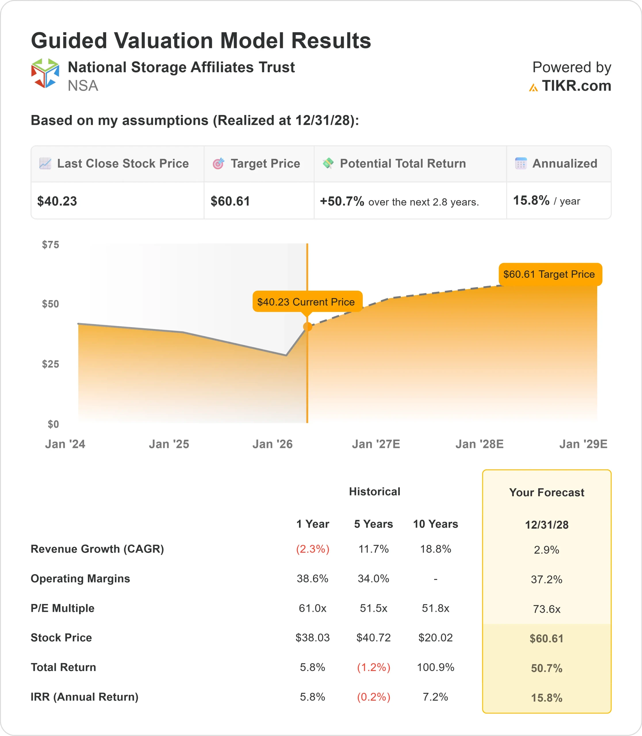 - $NSA Share Price as of Mar. 16: $40