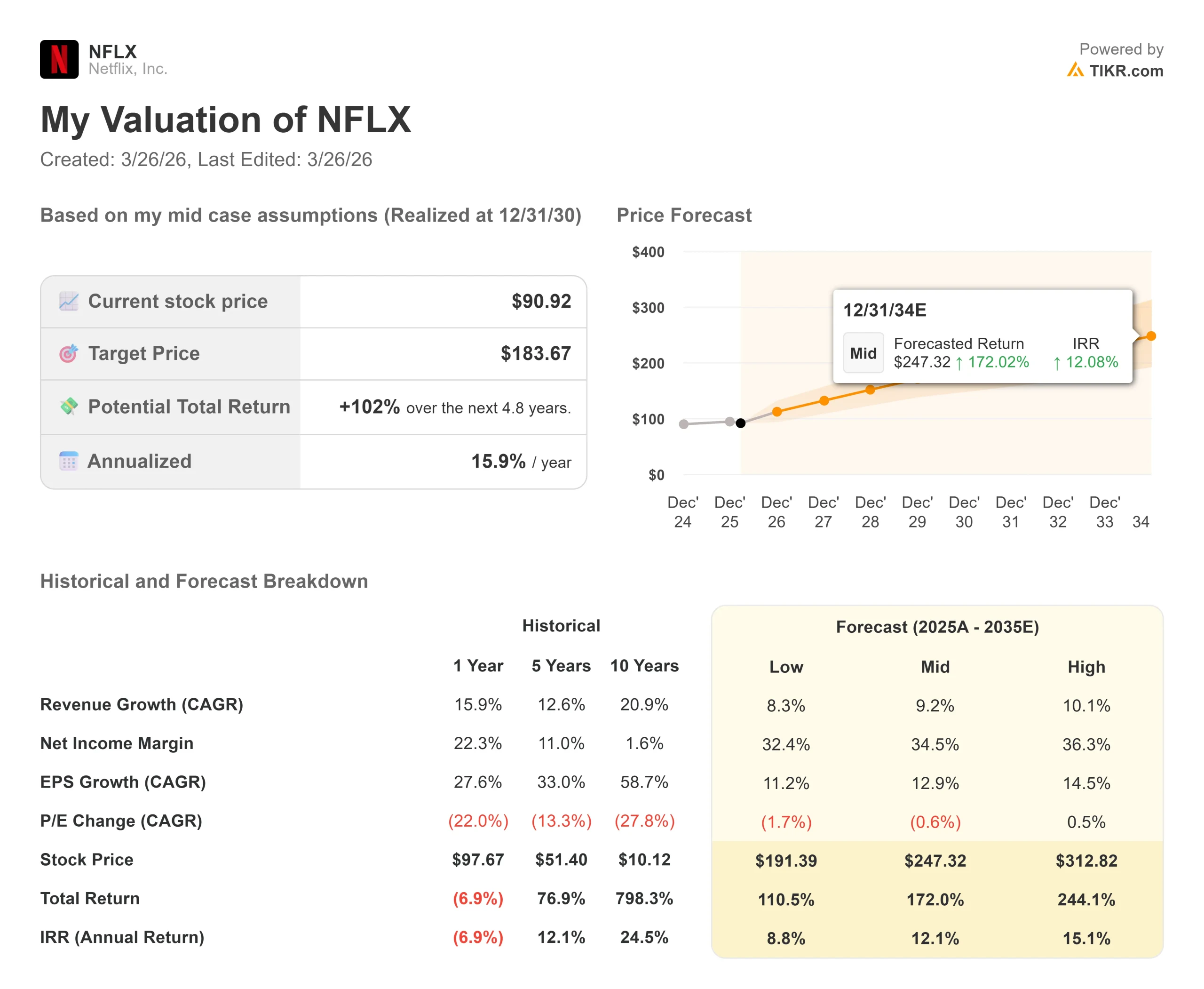 Model Netflix’s valuation and run your own price target free on TIKR.com