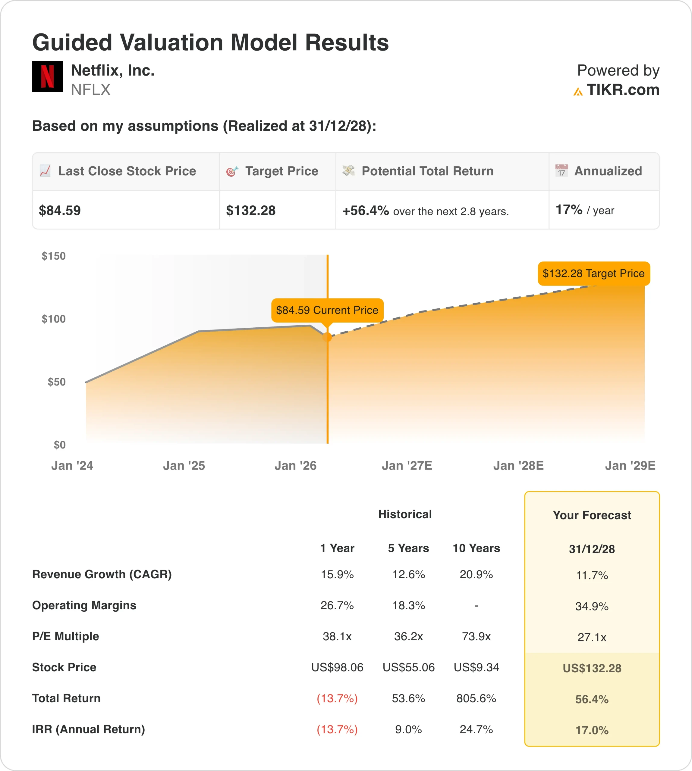 With TIKR’s new Valuation Model tool, you can estimate a stock’s potential share price in under a minute.