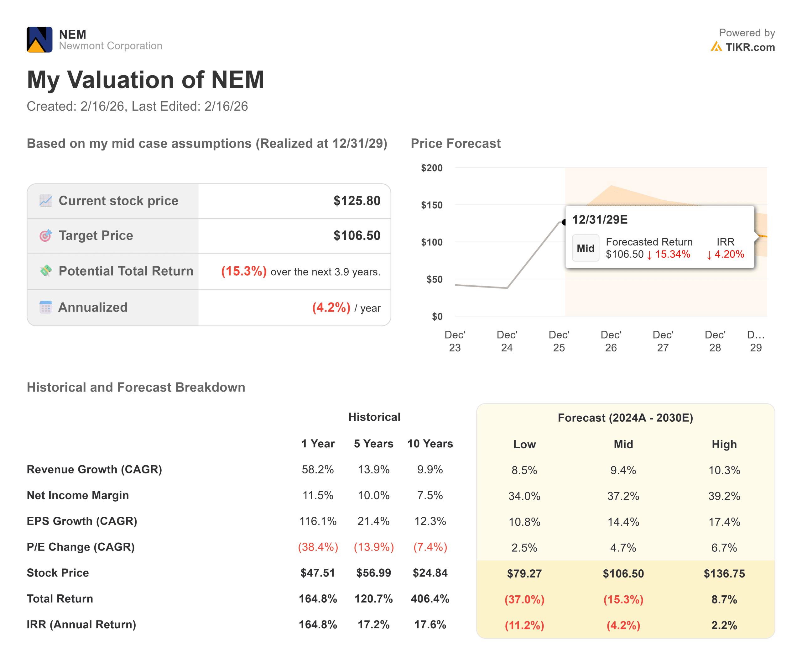 Conclusion: A classic trap. With a projected -4.2% annualized return, Newmont appears to be a “crowded trade.” While the company is world-class, the valuation has detached from the fundamentals. Investors chasing the gold rally here are paying a steep premium for safety.