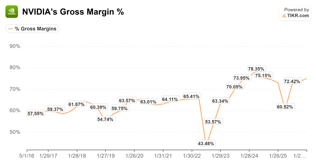 This is Jensen articulating NVIDIA’s pricing power thesis in its simplest form. Gross margins in the mid-70s are sustainable as long as each new architecture delivers a step-function improvement in customer economics. If NVIDIA can consistently offer 10x or more improvement in performance per watt and performance per dollar, customers will pay premium prices because the total cost of ownership is still dramatically better than the alternative.