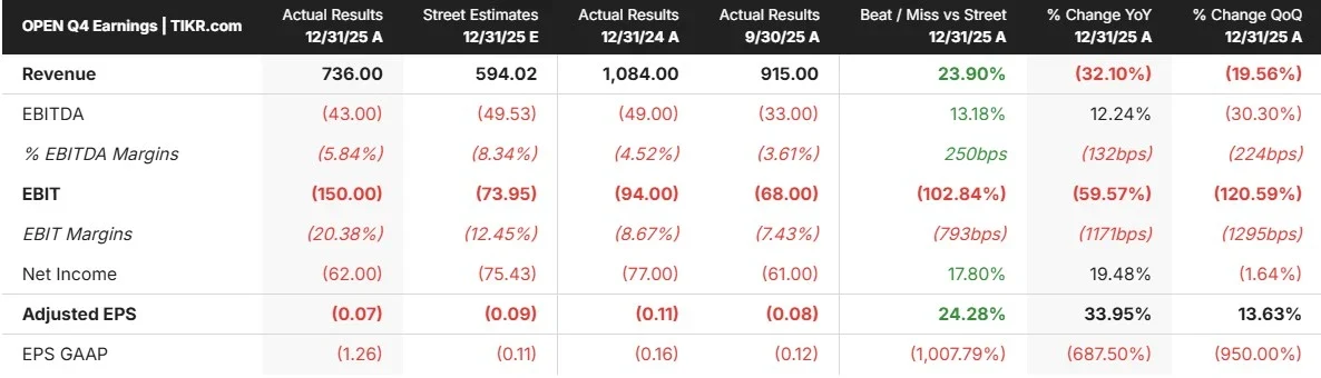 Opendoor Technologies (OPEN) stock surged 19% on Thursday (19th Feb) after the platform crushed fourth quarter revenue expectations and laid out a clear path to profitability.