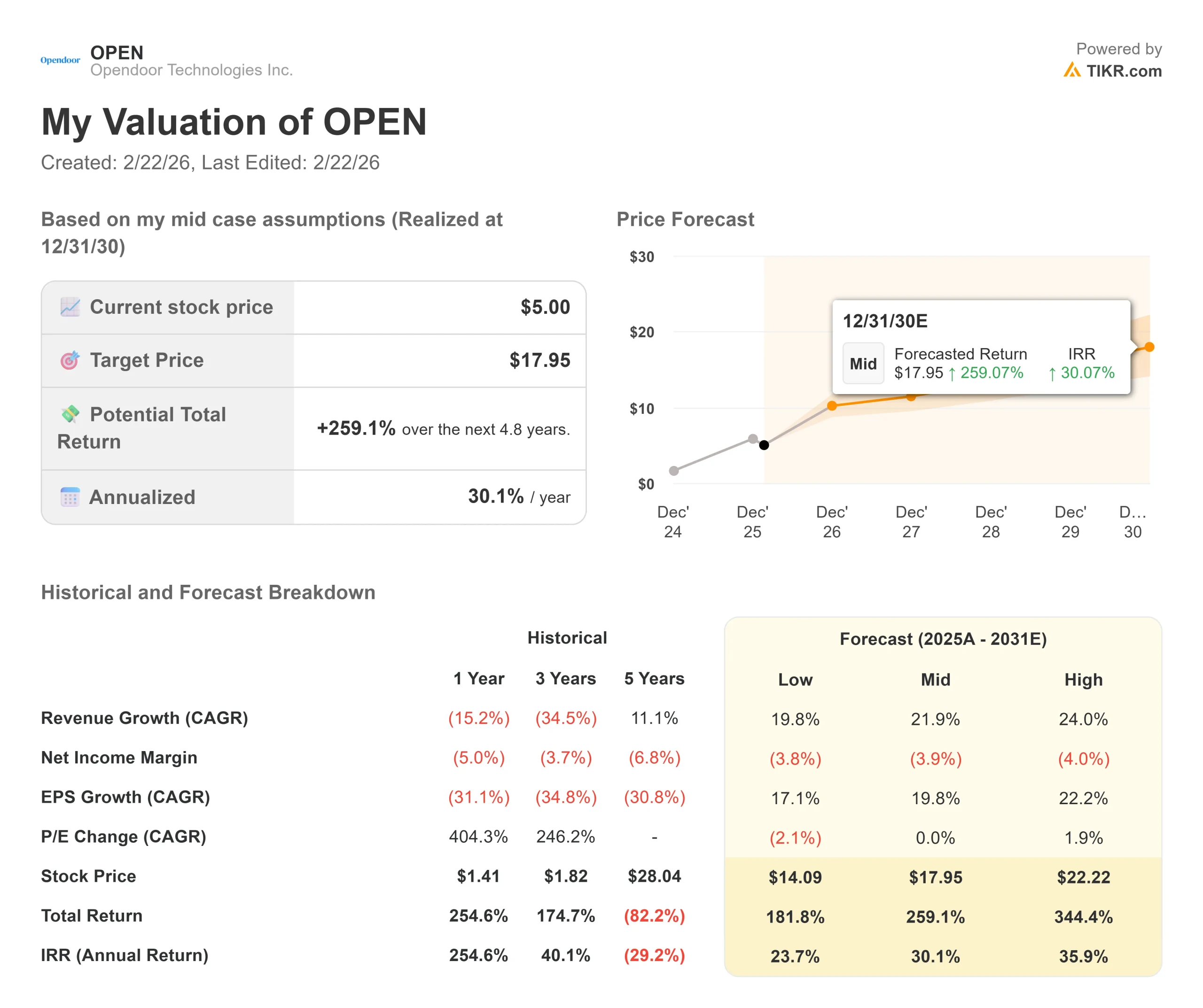 - $OPEN Share Price as of Feb. 20: $5