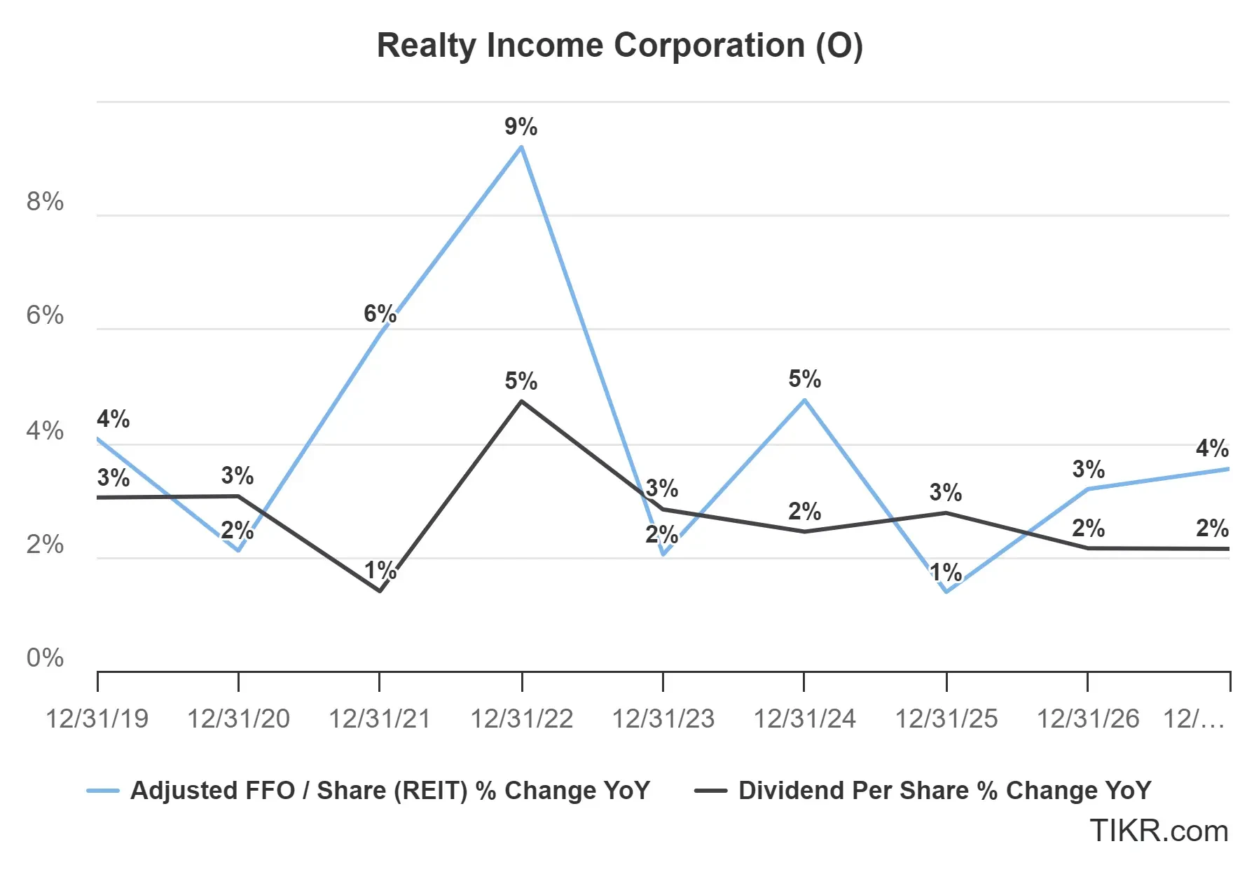 Realty Income’s dividend growth might be slow, but it’s steady.