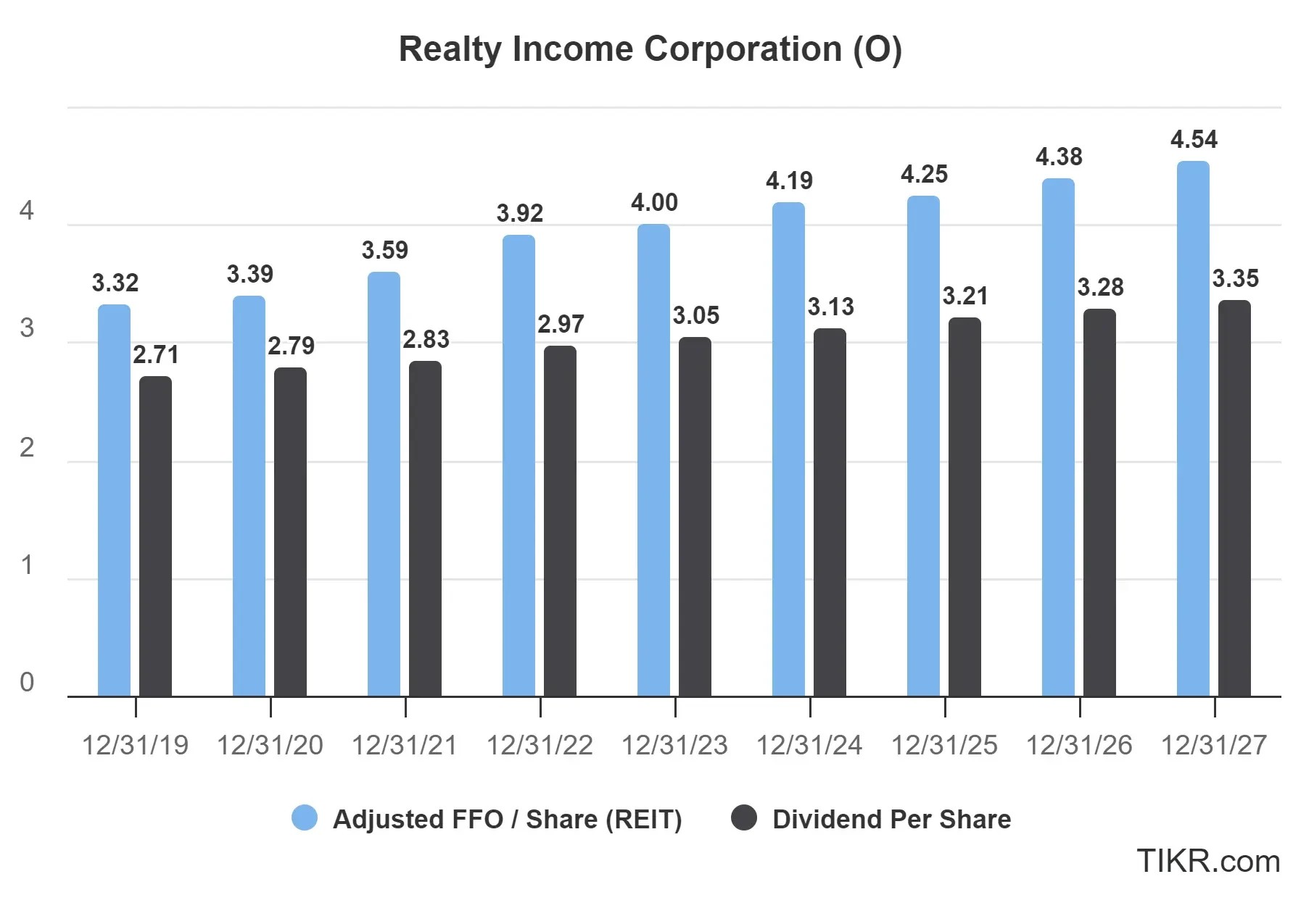 It’s not the fastest-growing stock, but Realty Income delivers what dividend investors tend to value most: predictable dividends with solid earnings coverage.