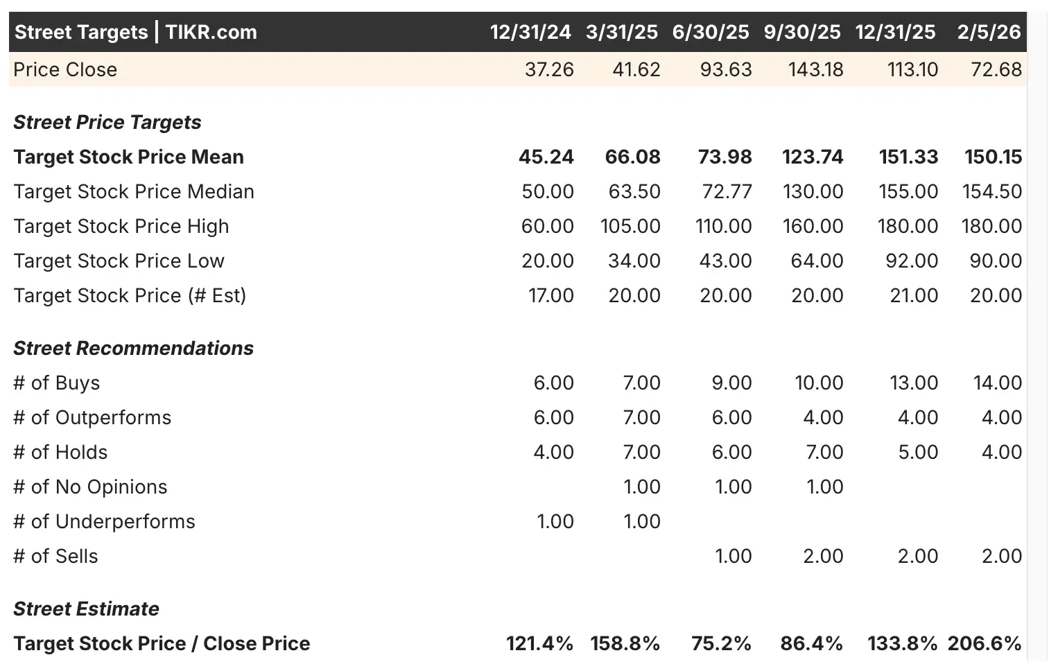 Street analysts currently see room for the stock to rebound, with an average target price of about $150 per share versus $72.68 today, supported by a range of forecasts that include a high of $180 and a low of $90 based on 20 estimates.