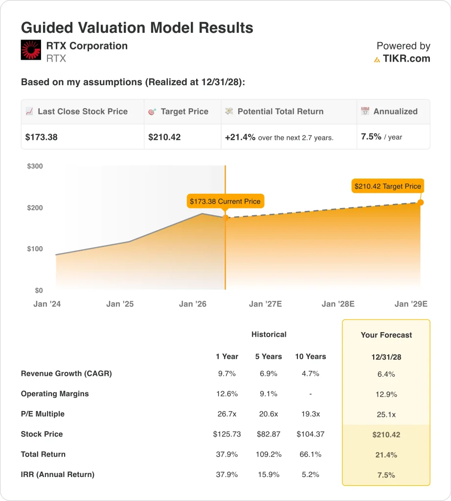 Value your favorite stocks like RTX with 5 years of analysts’ forecasts using TIKR’s new Valuation Model (It’s free) >>>