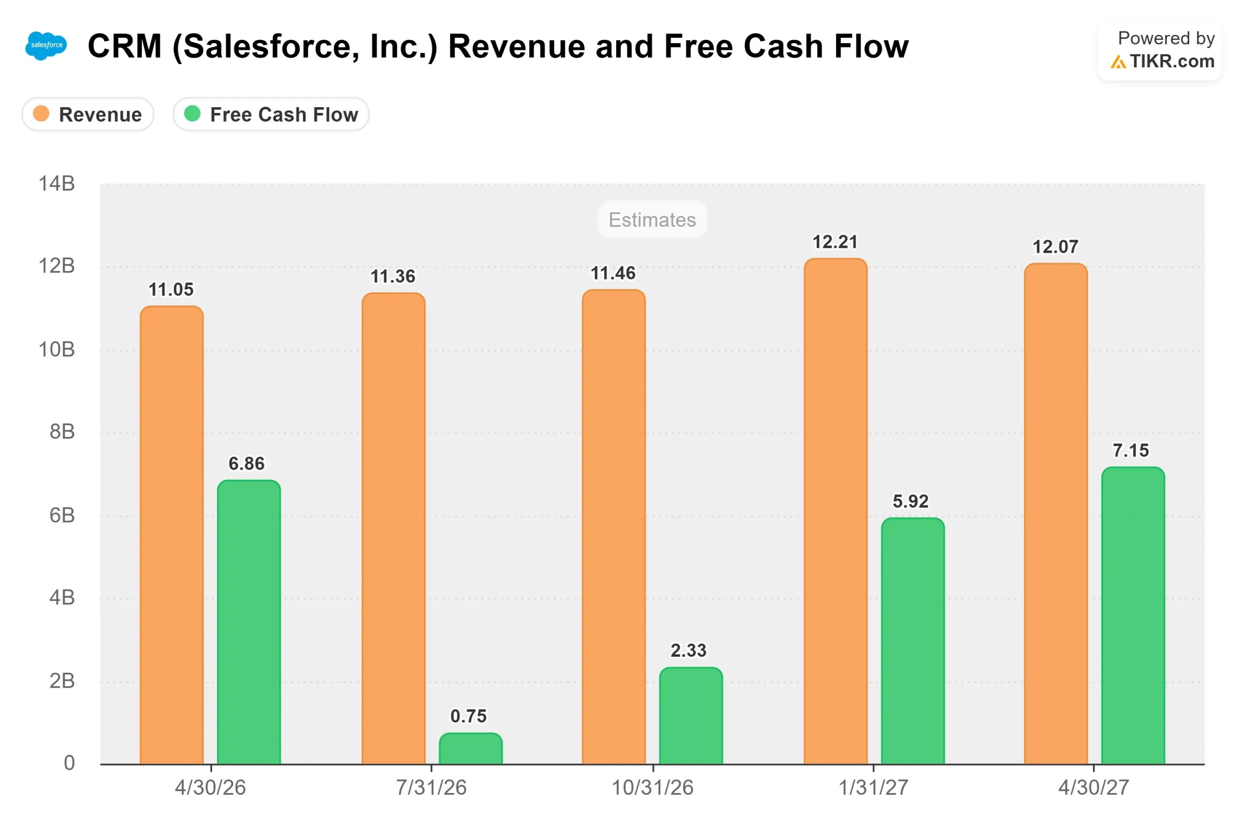 For fiscal 2027, Salesforce expects revenue between $45.8 billion and $46.2 billion, representing 10% to 11% growth.
