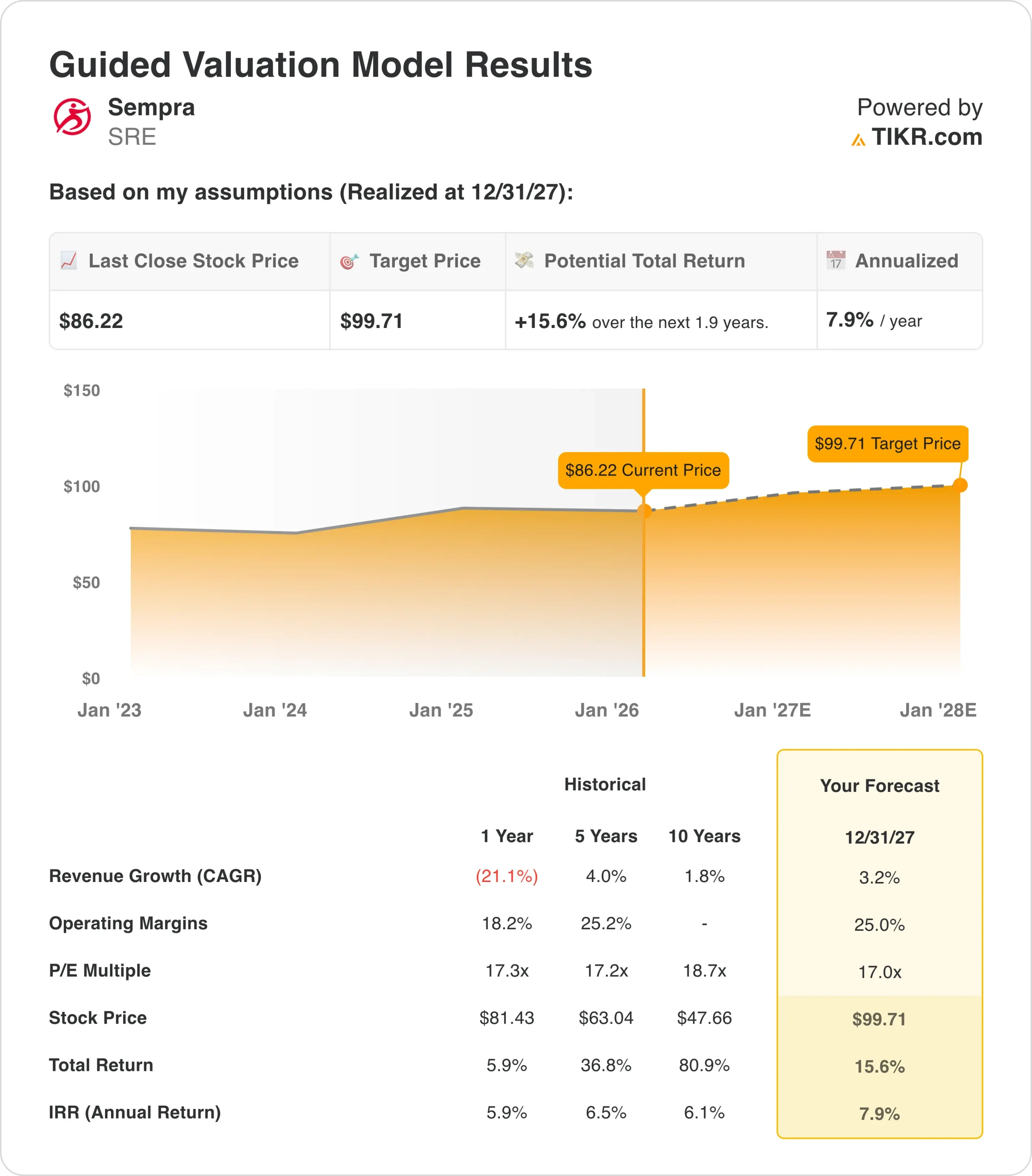 Value your favorite stocks like Sempra with 5 years of analysts’ forecasts using TIKR’s new Valuation Model (It’s free) >>>