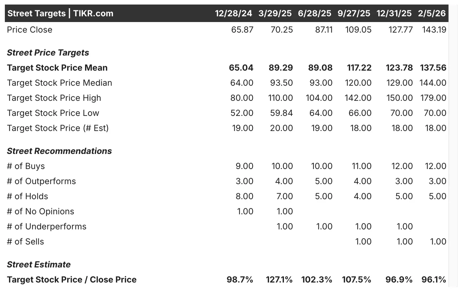 - TPR Share Price as of Feb. 5: $143.19