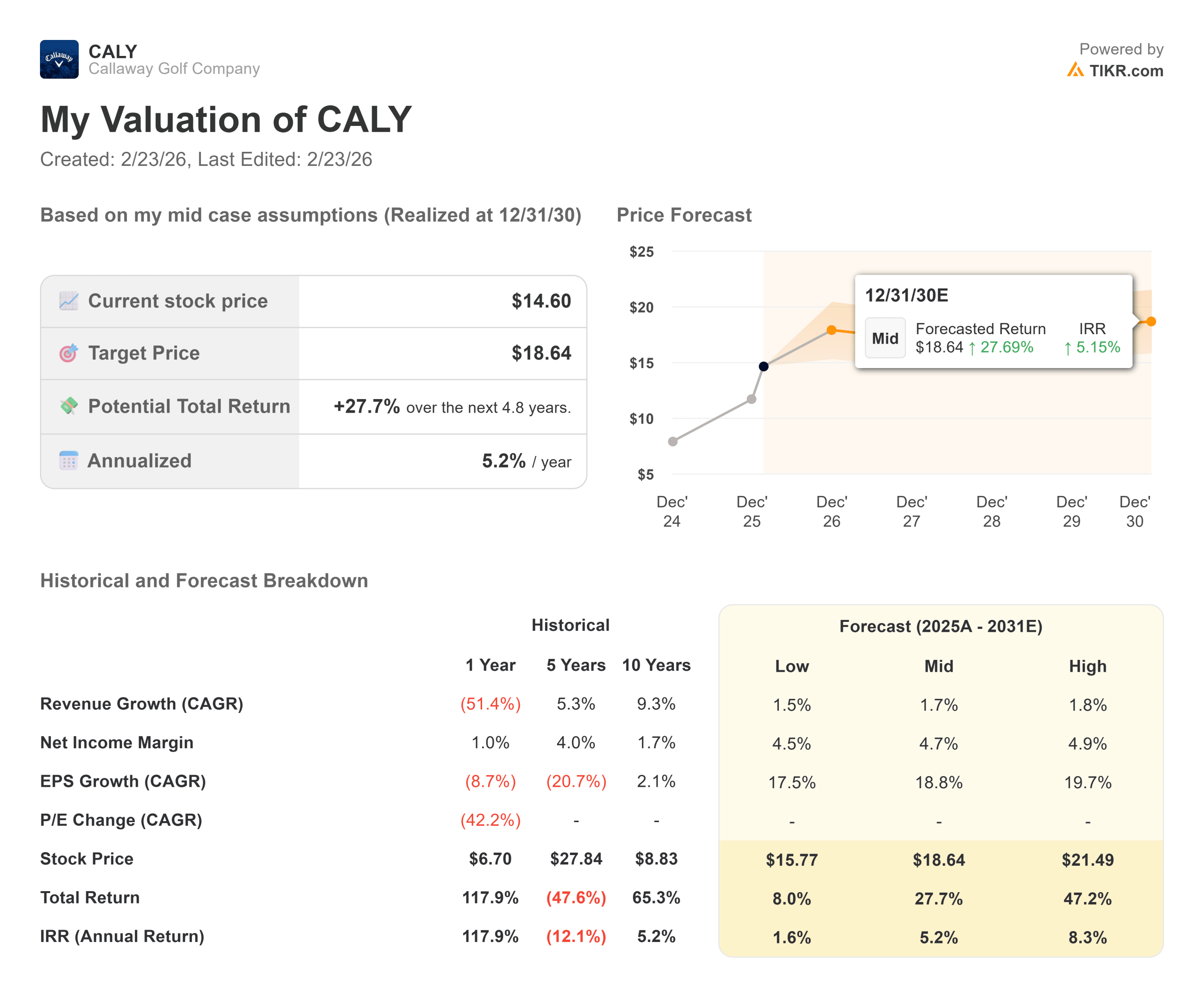- Valuation Model Target: $18.64