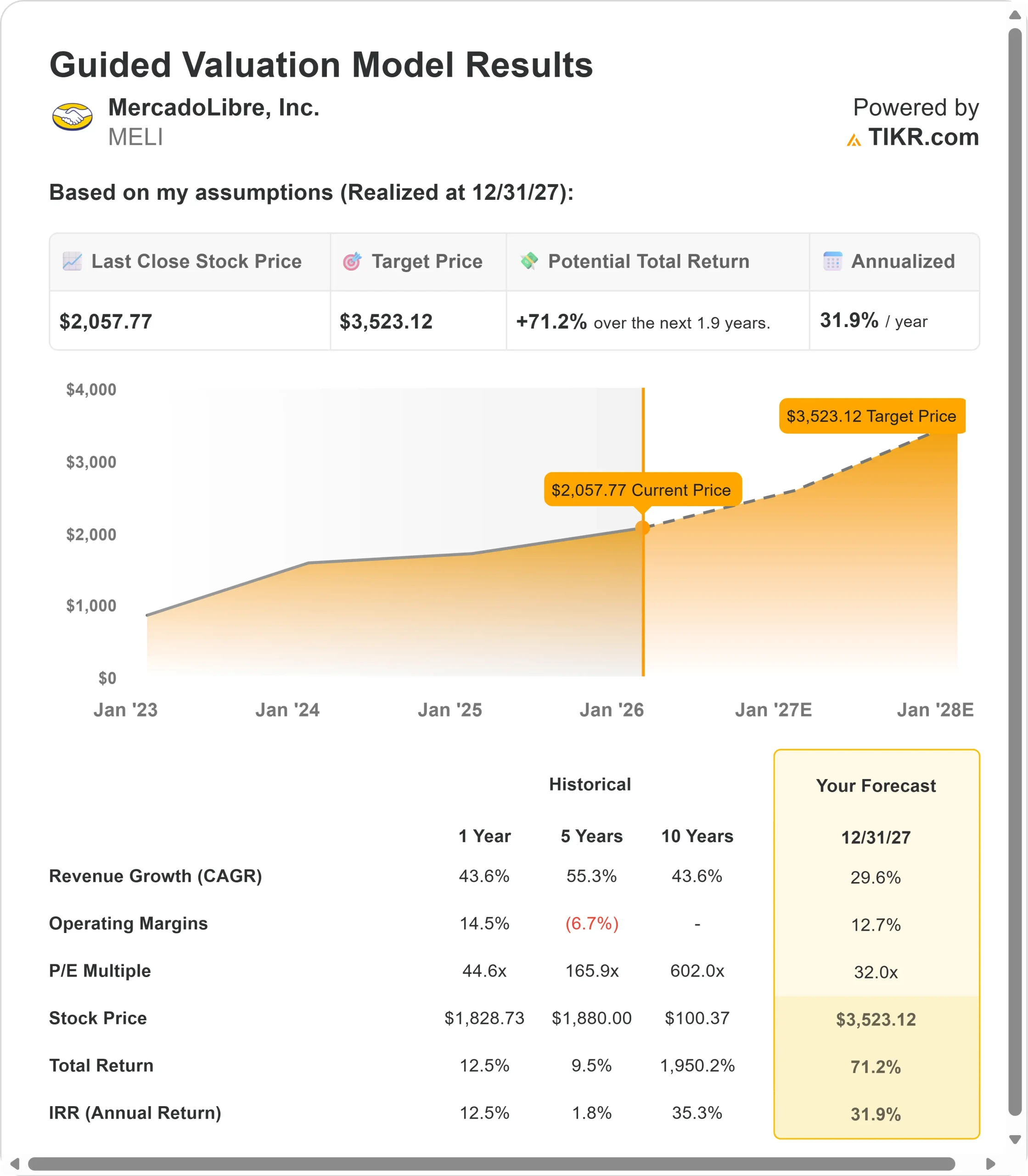 Here’s what we used for MELI stock: