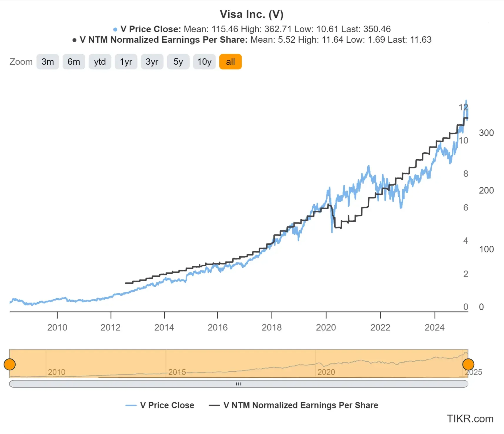 Visa has positioned itself as a leading player in the digital payments industry and has grown its earnings-per-share for decades.