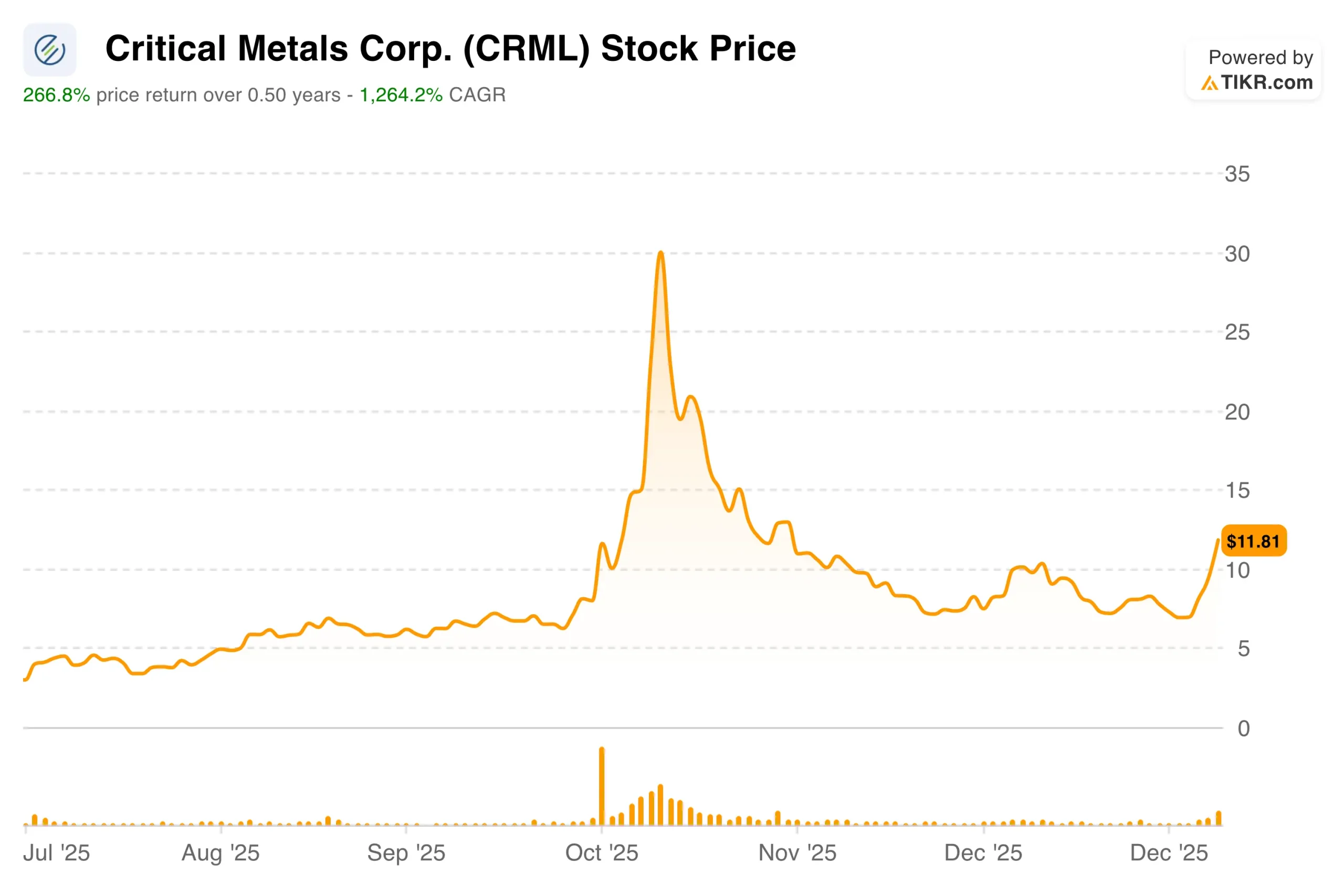 - $CRML Share Price as of Jan. 6: $11.81