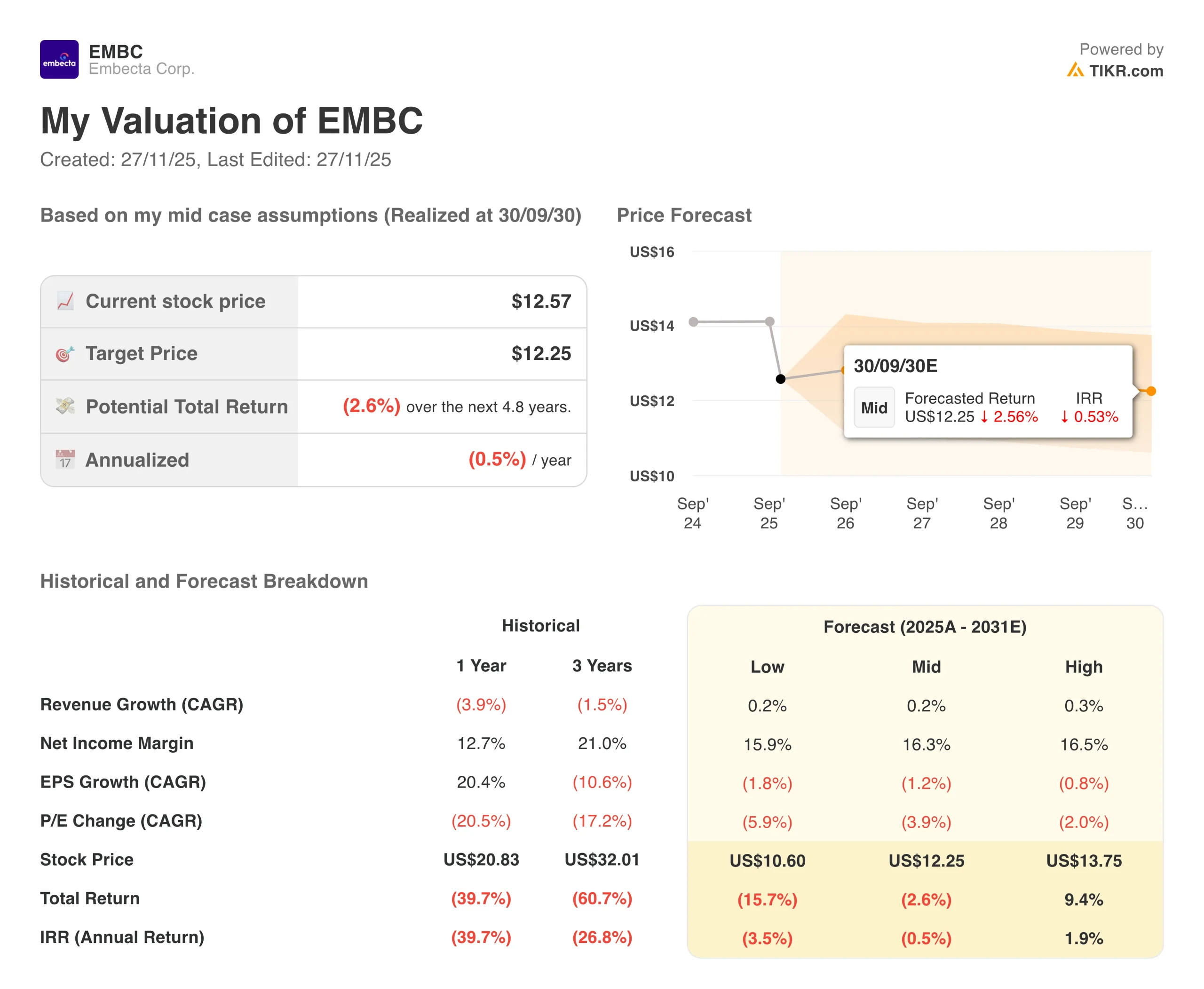 See analysts’ growth forecasts and price targets for EMBC stock (It’s free!) >>>
