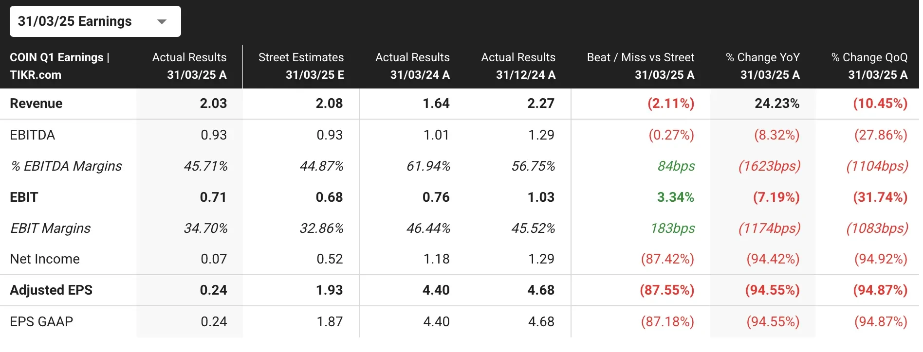 The announcement comes just days after Coinbase reported its Q1 earnings, which showed mixed results. While the company posted a profit of $65.6 million, or $0.24 per share (down significantly from $1.18 billion, or $4.40 per share a year earlier), revenue rose 24% to $2.03 billion.