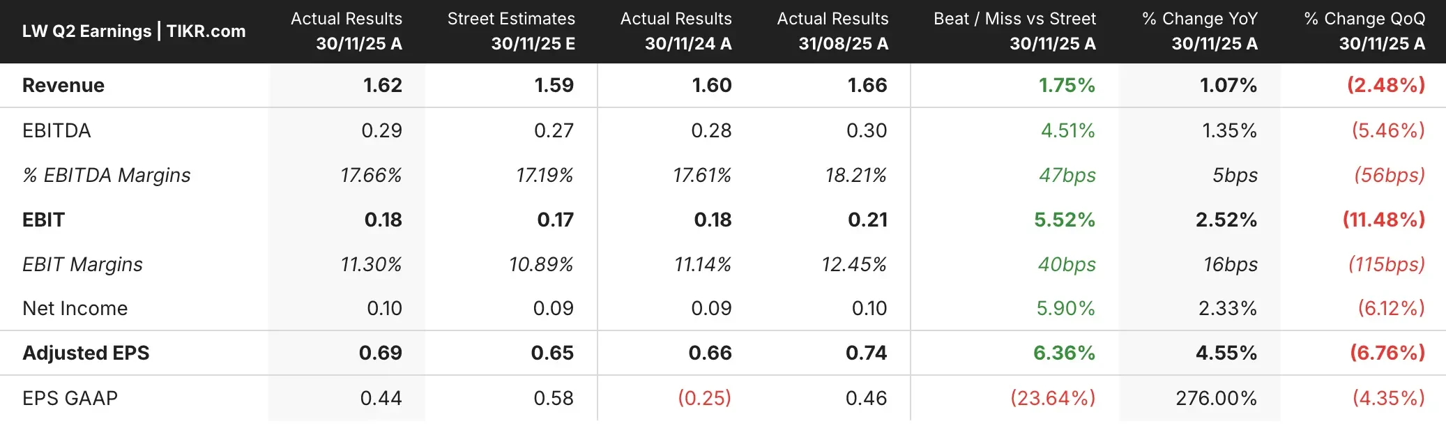 What the Market Is Telling Us About LW Stock