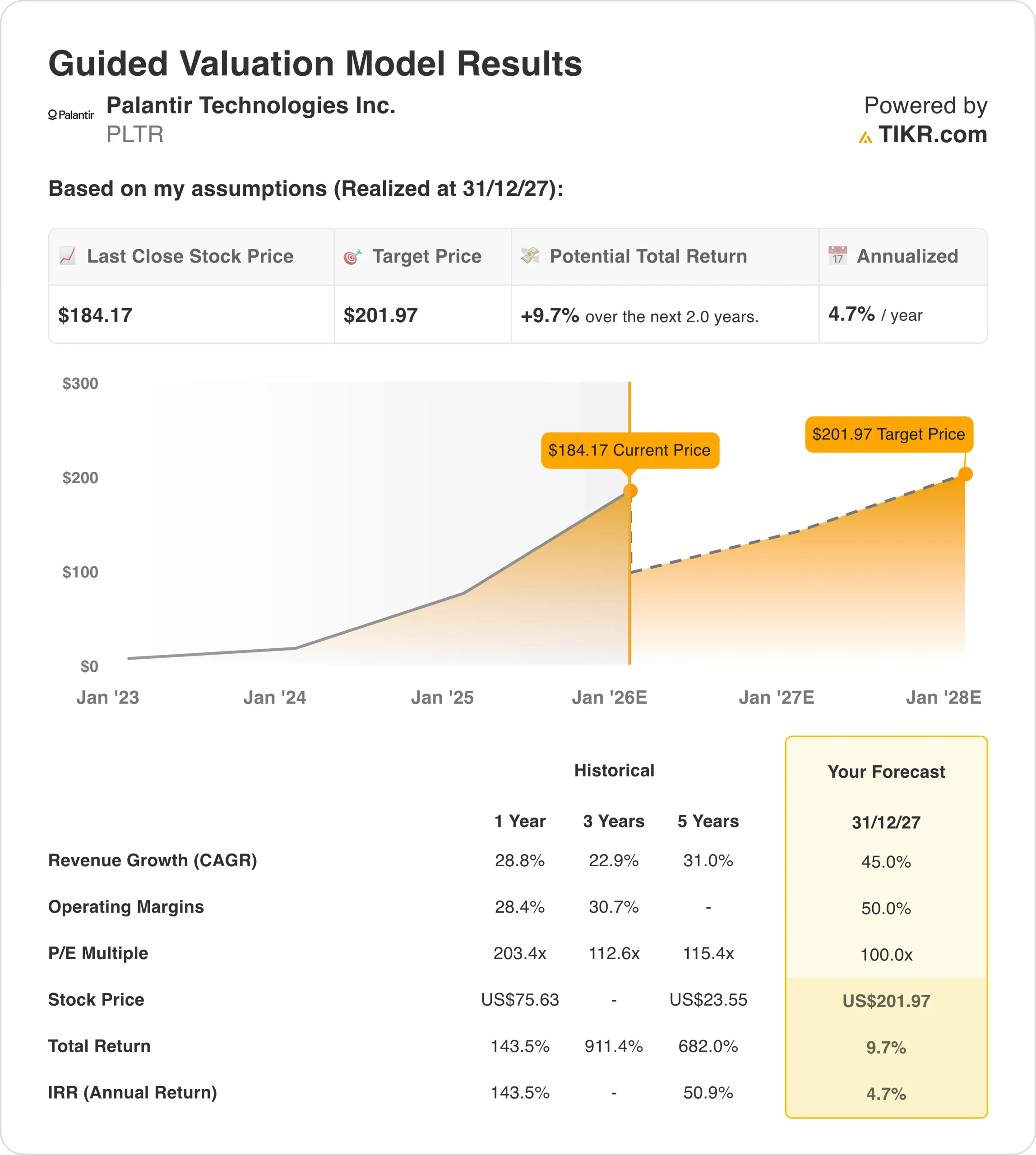 If you’re not sure what to enter, TIKR automatically fills in each input using analysts’ consensus estimates, giving you a quick, reliable starting point.