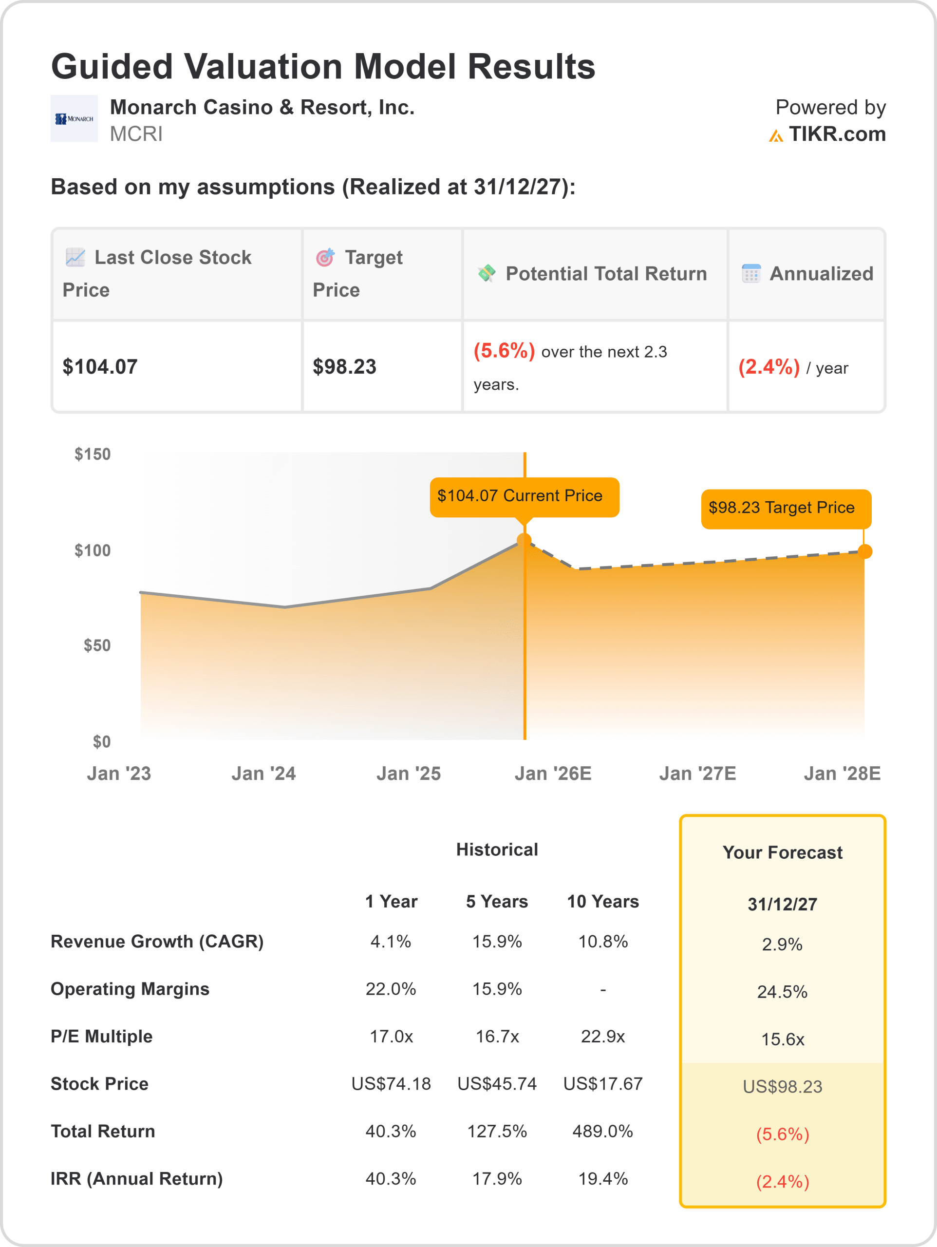 Wertaktien wie Monarch Casino & Resort schneller mit TIKR >>>