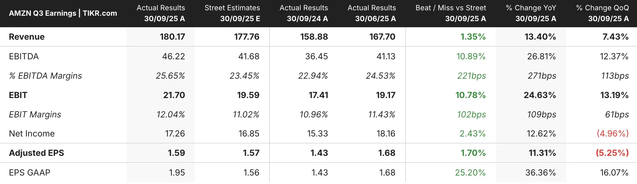 Die eigentliche Story war jedoch Amazon Web Services, das um 20,2 % wuchs und einen Quartalsumsatz von 33 Mrd. USD erzielte, was deutlich über den von Analysten erwarteten 32,42 Mrd. USD liegt und die schnellste Wachstumsrate von AWS seit 2022 darstellt.