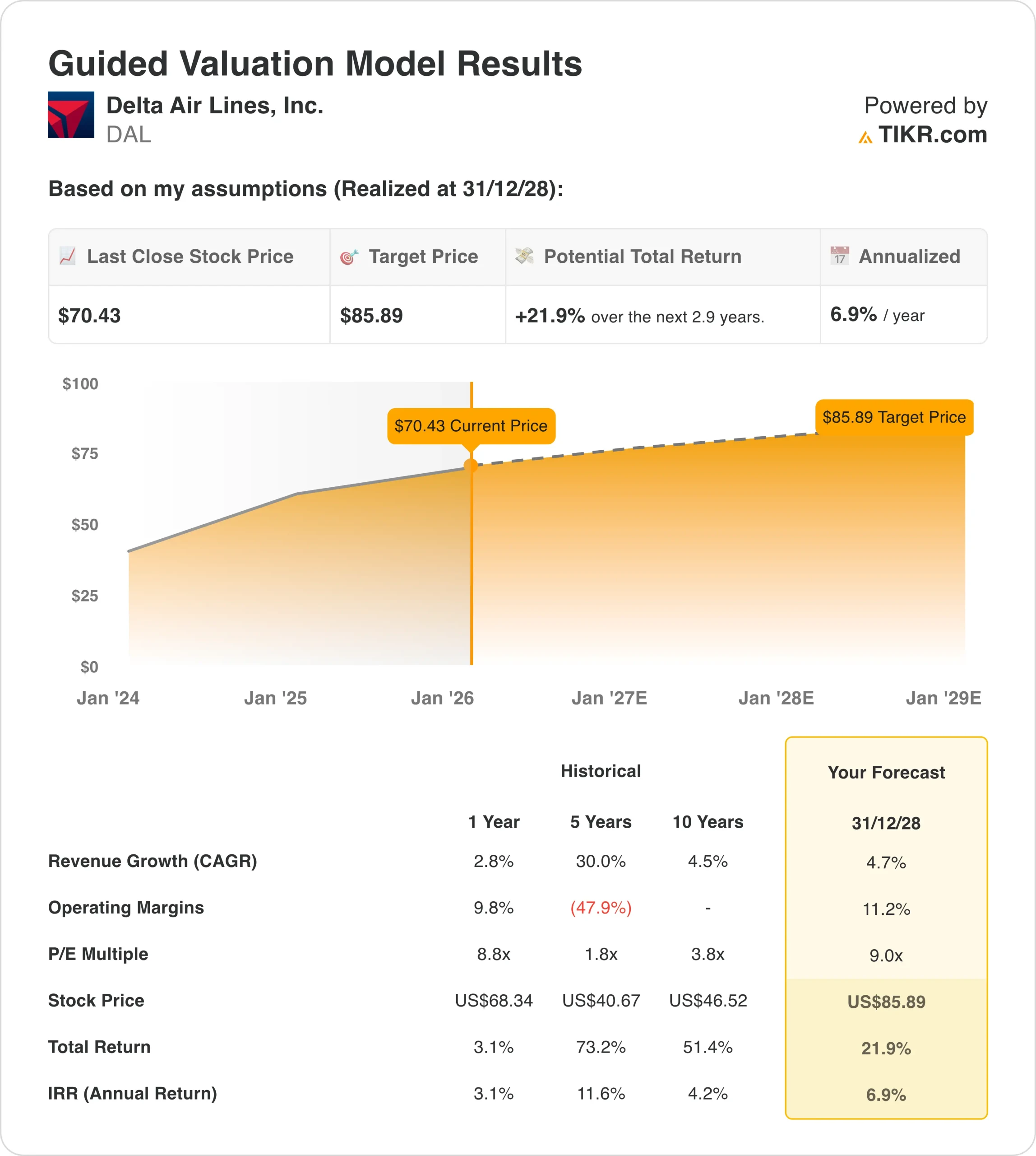 - $DAL Aktienkurs per 16. Januar: $70.43