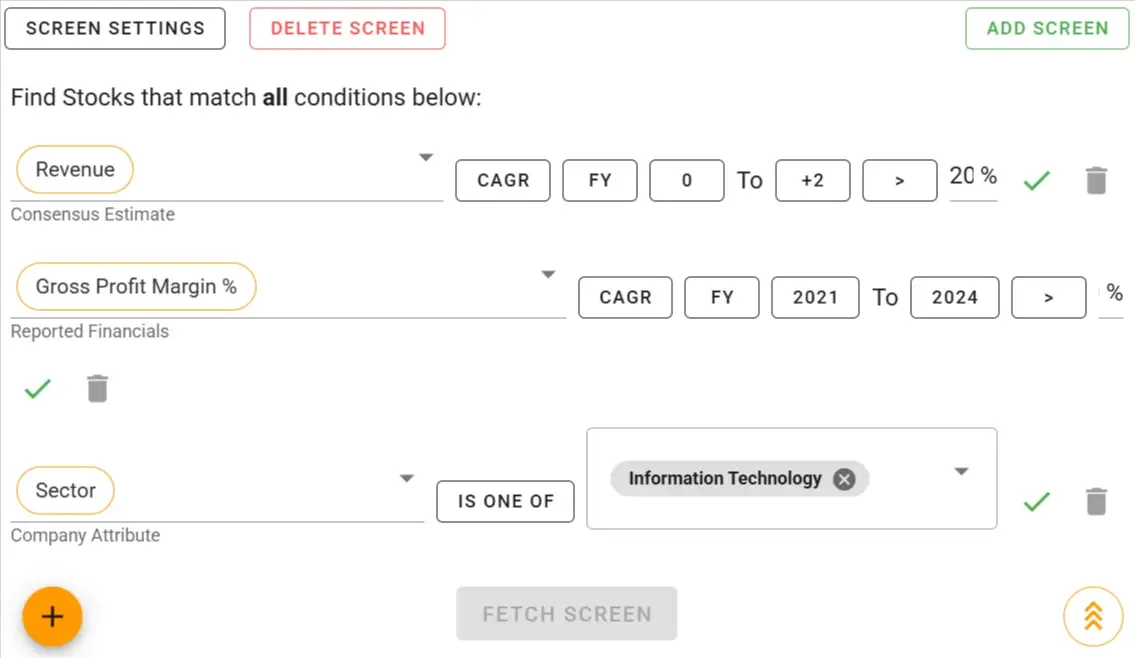 - Für Skalierung ausgelegt: Durch Hinzufügen eines Margenfilters können Sie Unternehmen finden, die wachsen und ihre Rentabilität verbessern können.