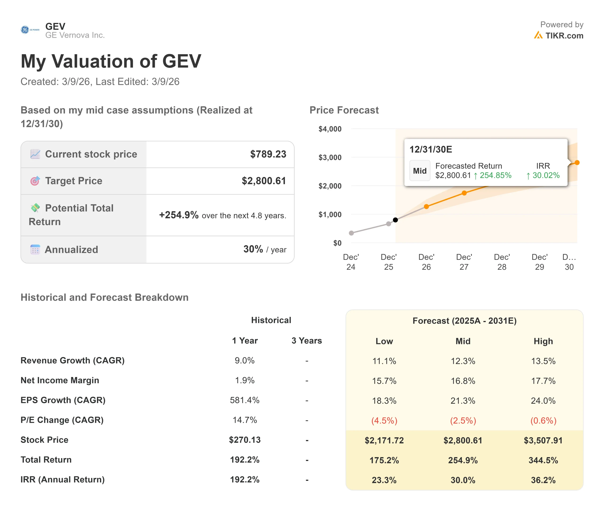 - $GEV Aktienkurs per 9. März: $806