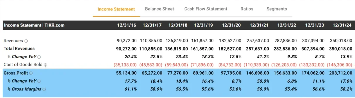 Die Bruttogewinnmarge von Google ist in den letzten Jahren gestiegen und liegt nun bei 57 %. Dies ist ein gutes Zeichen: