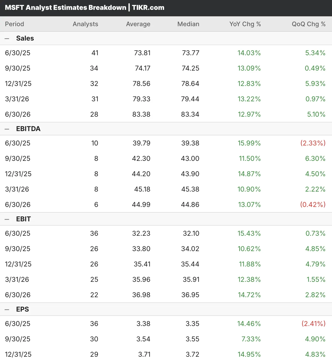 Analysten, die sich mit der MSFT-Aktie befassen, erwarten, dass der Umsatz im Jahresvergleich um 14 % auf 73,81 Mrd. USD steigen wird, während der Gewinn um 14,5 % auf 3,38 USD pro Aktie zulegen soll.