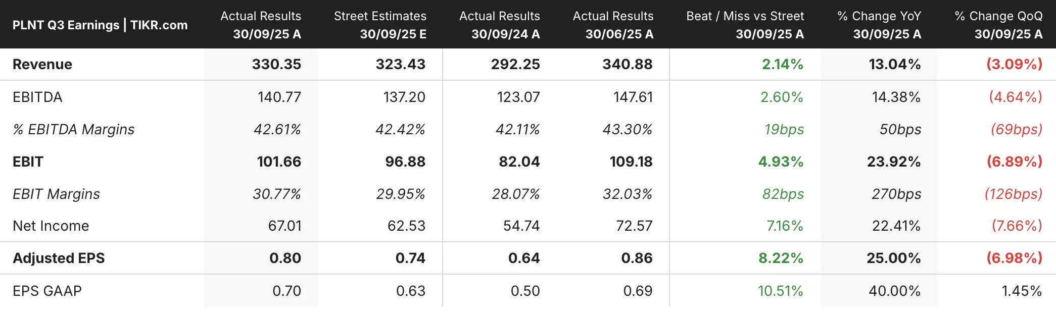 Planet Fitness übertraf letzte Woche die Erwartungen für das dritte Quartal und meldete einen Umsatz von 330,3 Millionen US-Dollar und einen Gewinn von 0,80 US-Dollar pro Aktie, die beide über den Schätzungen der Analysten lagen.
