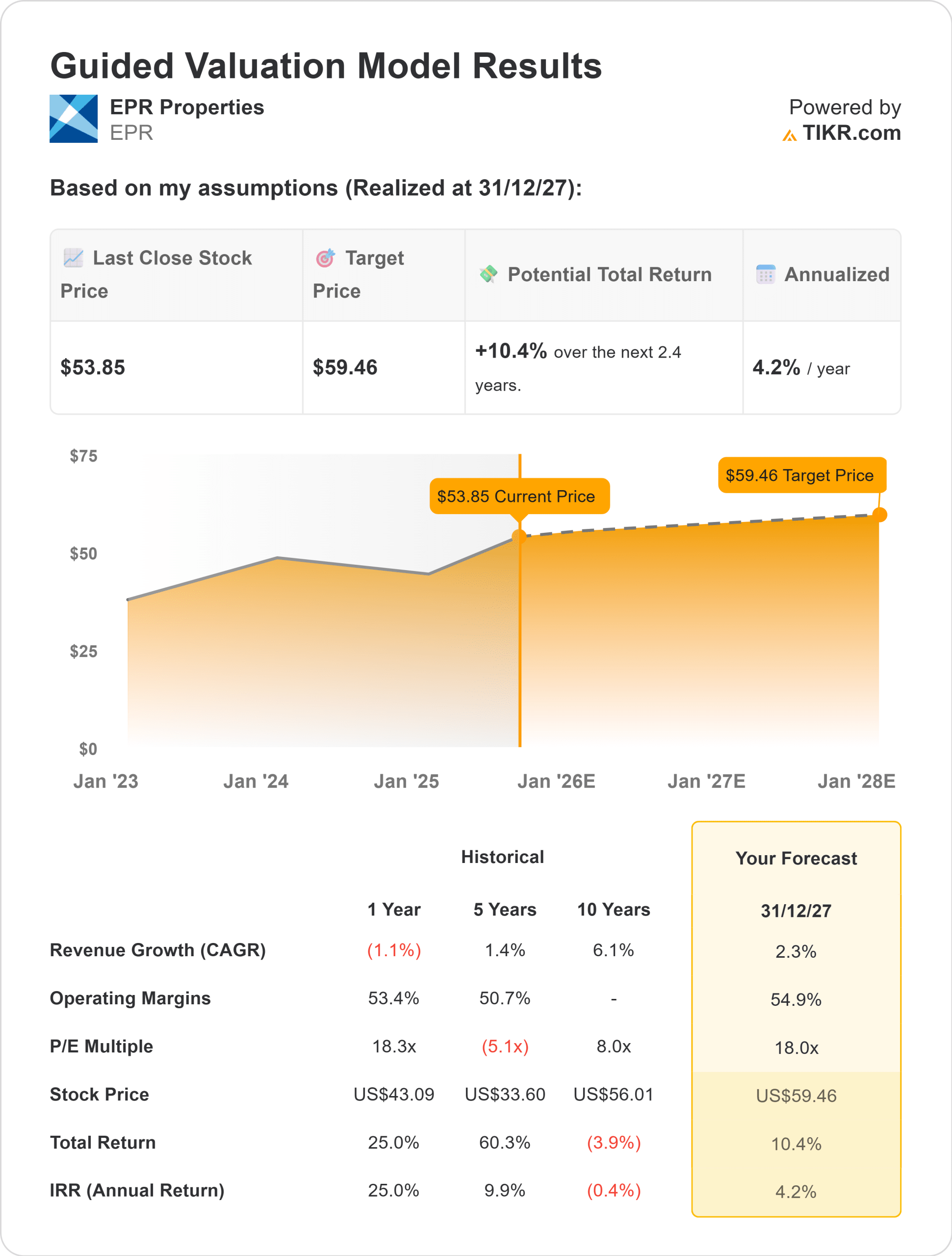 - Potencial alcista a largo plazo respaldado por las previsiones de los analistas y los modelos de valoración de TIKR.