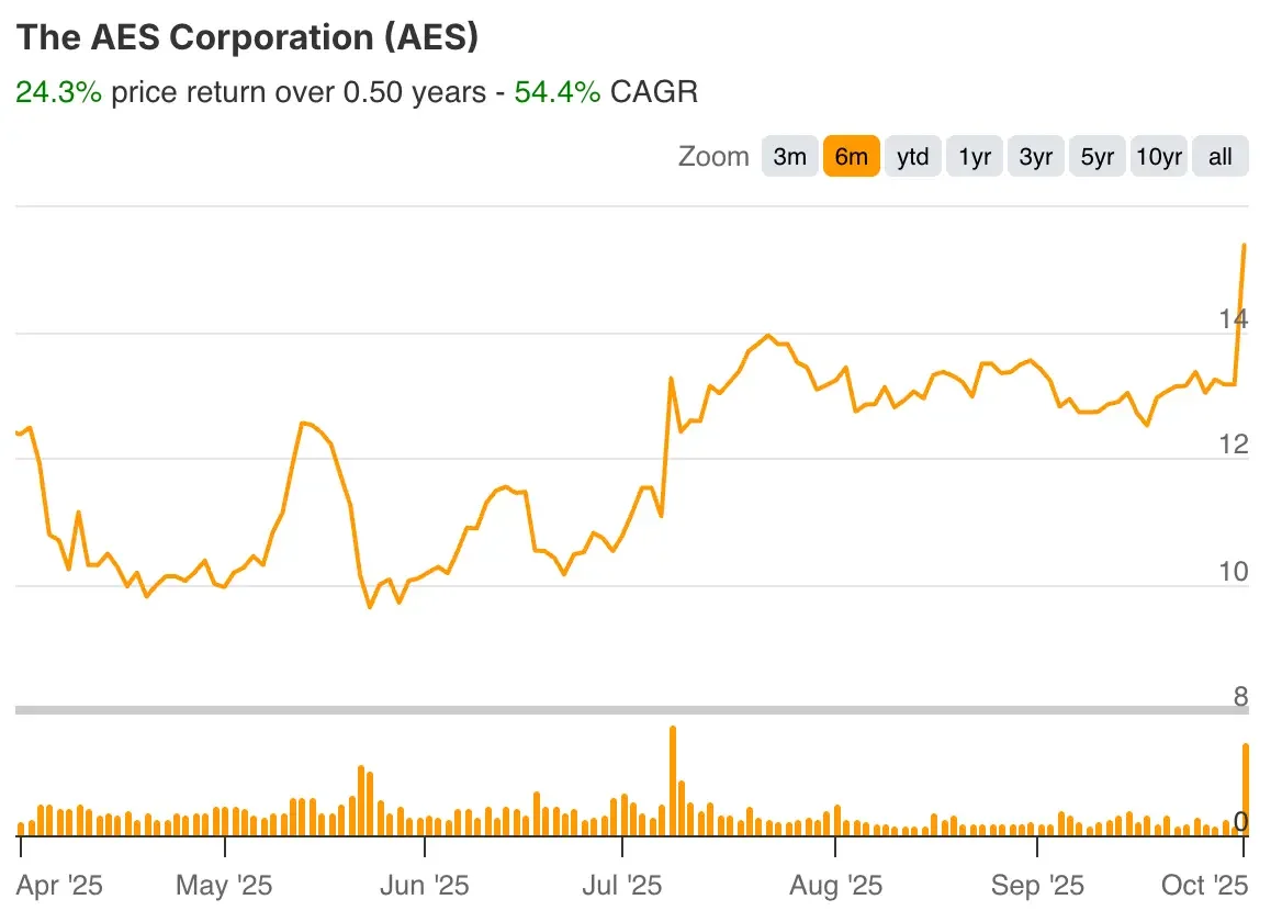 - Cambio de precio para las acciones de $AES: 16%.