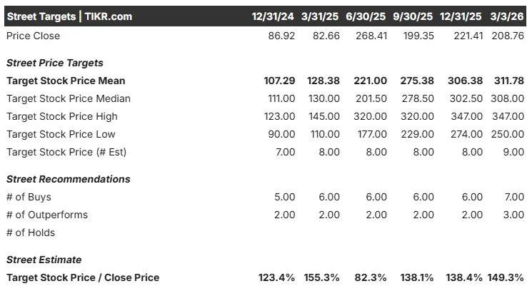 El precio objetivo de consenso de Street de 311,78 dólares representa una atractiva rentabilidad potencial del 49,3% desde la base actual de 208,76 dólares.