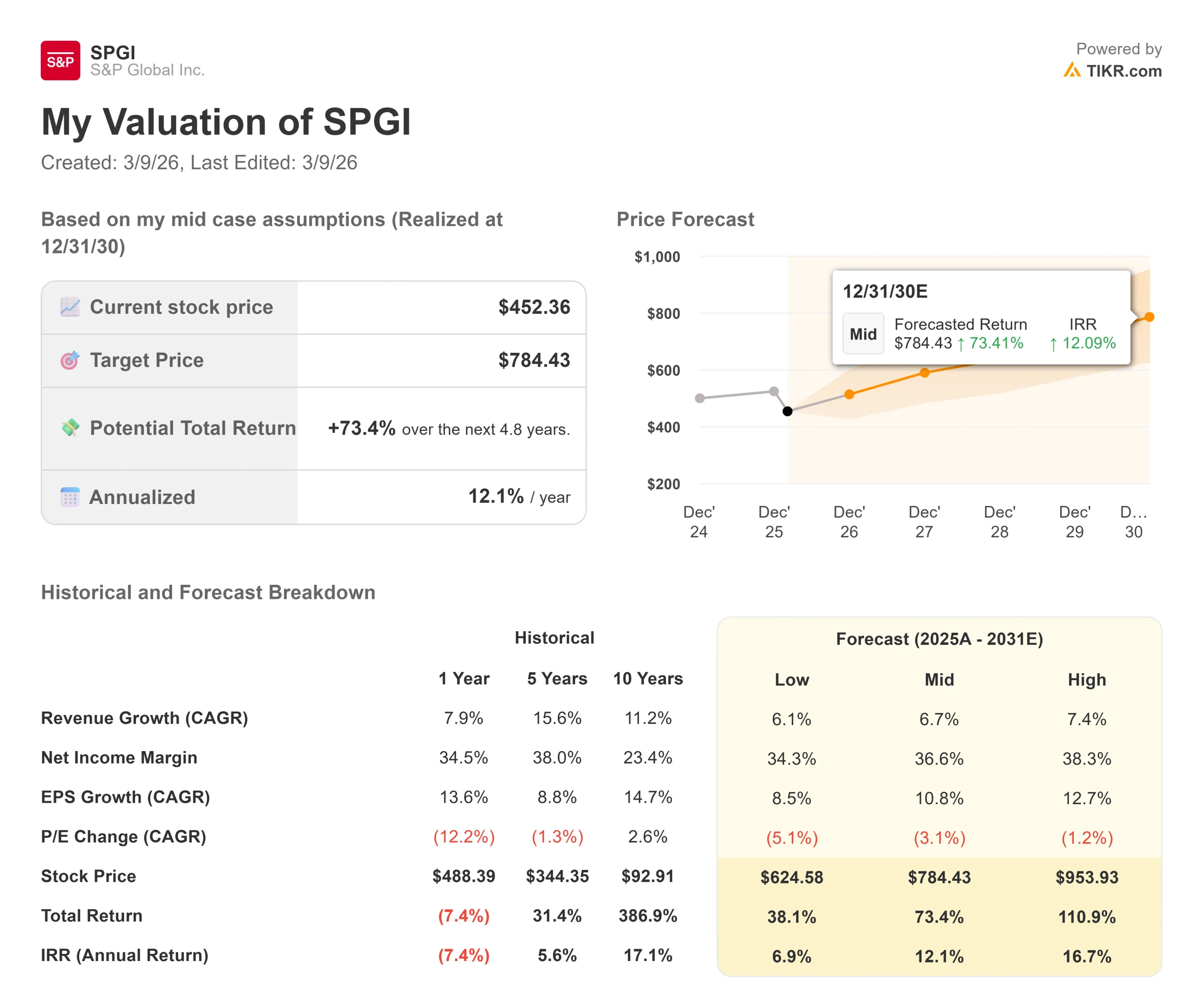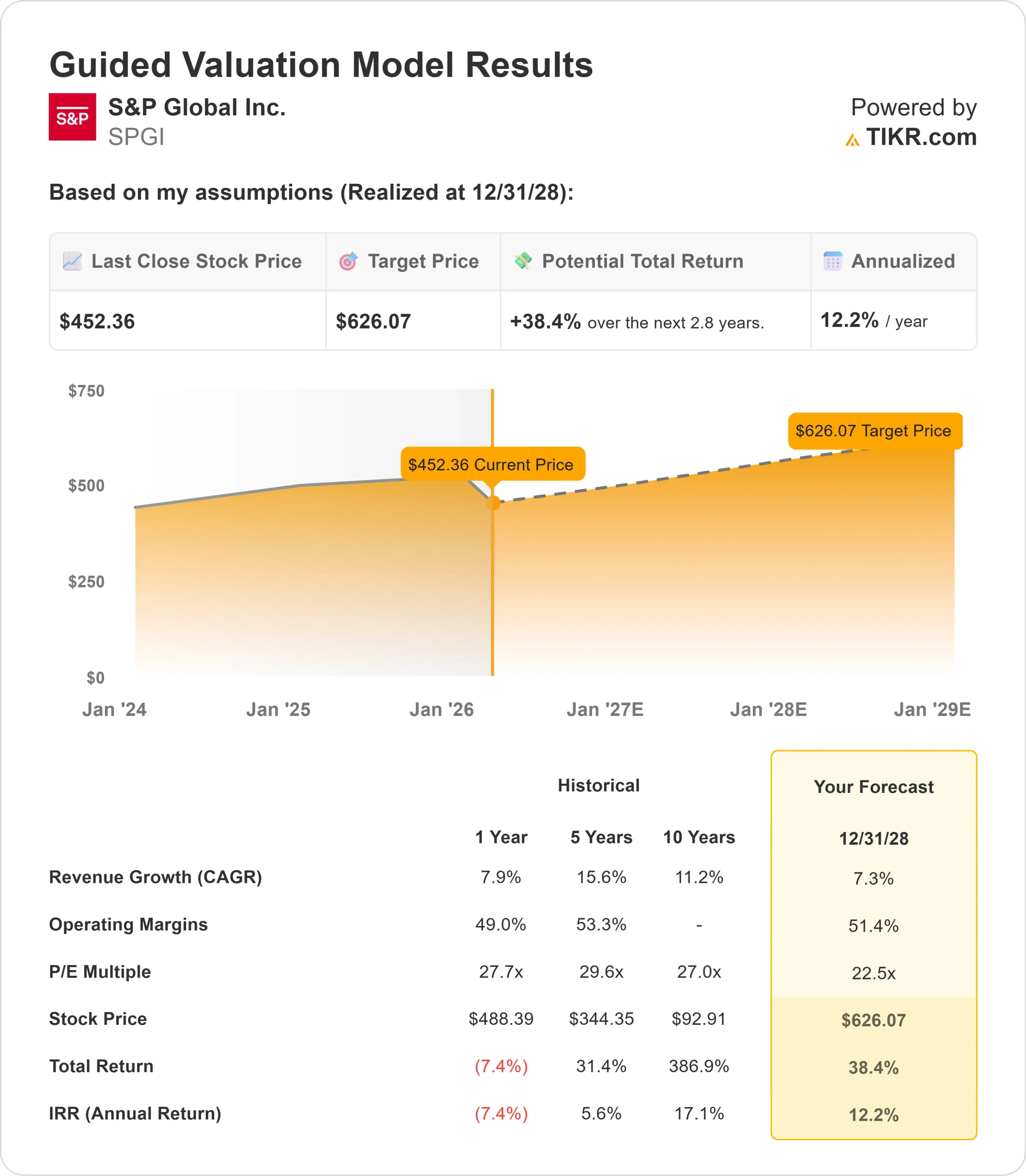 - Proyección de precios: Sobre la base de la ejecución actual, las acciones de SPGI podrían alcanzar los 626 dólares en diciembre de 2028.