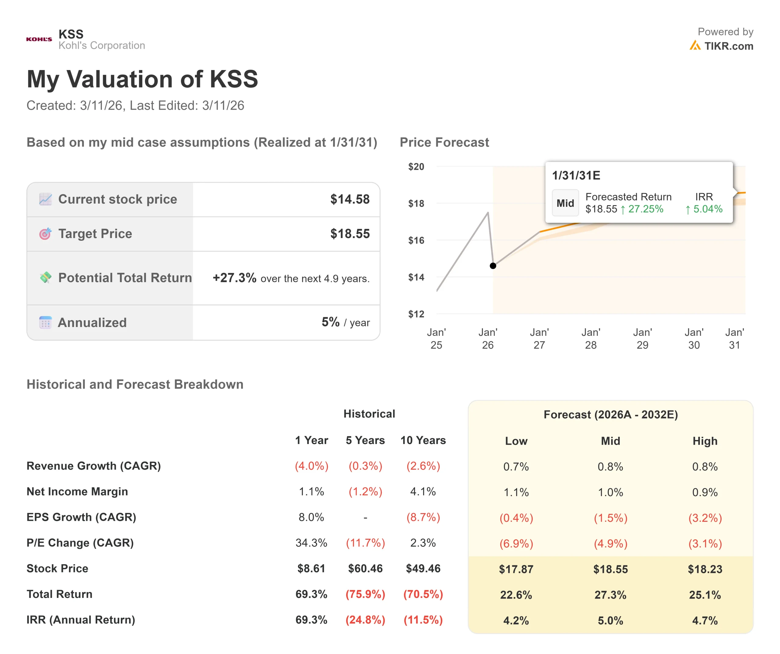 - Precio de la acción de $KSS a 10 de marzo: $15