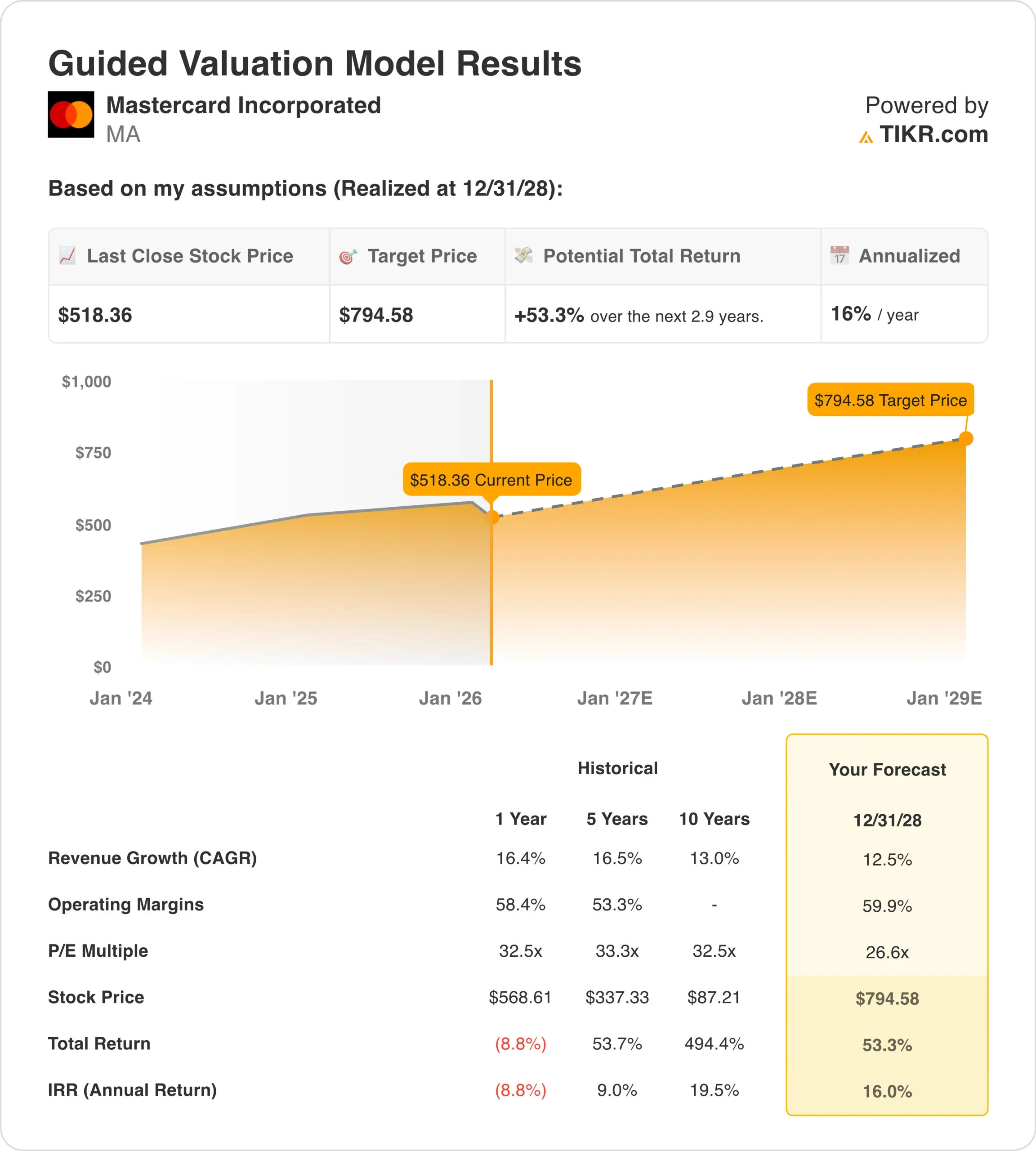 Evalúe sus acciones favoritas, como Mastercard, con 5 años de previsiones de analistas utilizando el nuevo Modelo de Valoración de TIKR (Es gratis) >>>