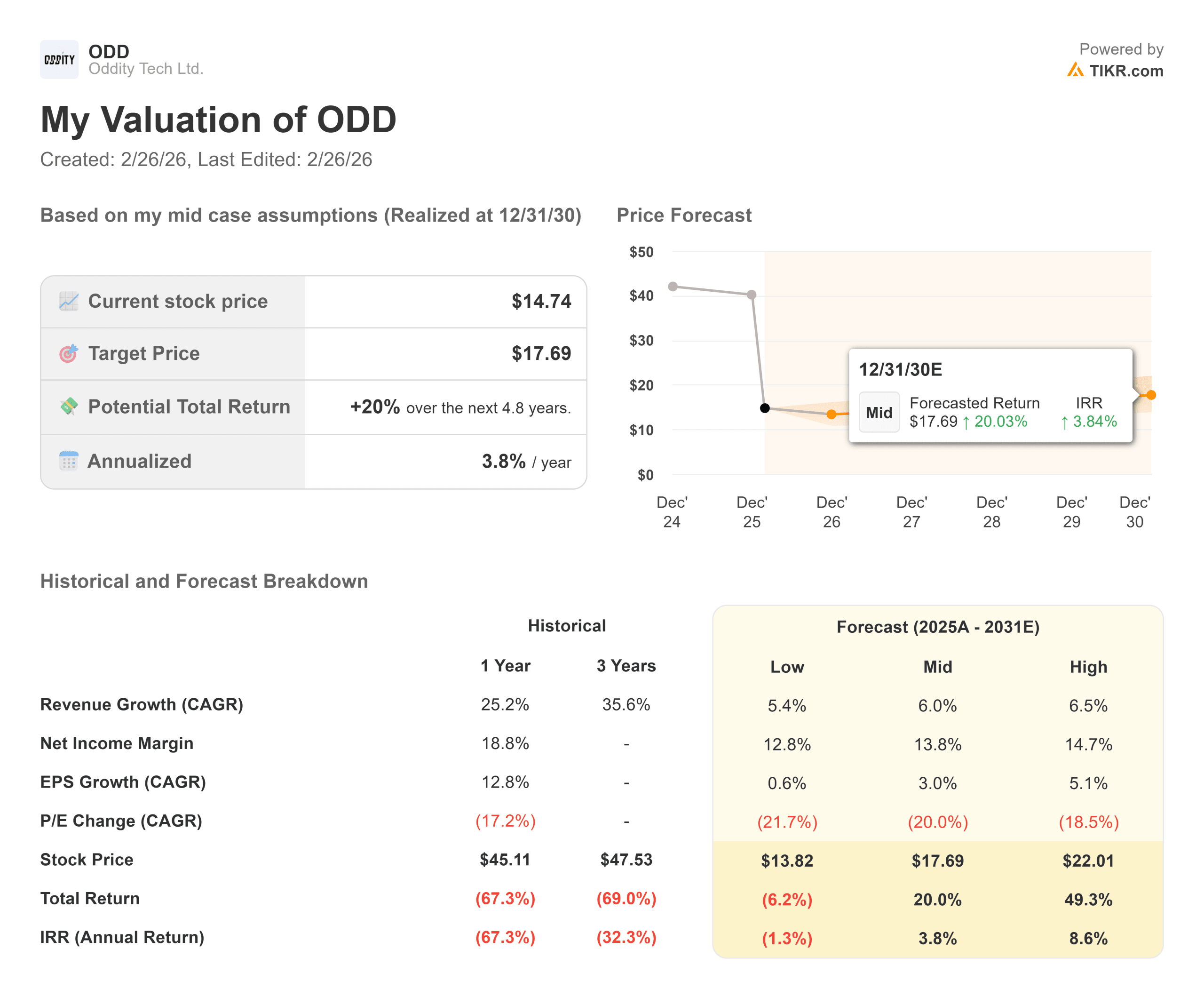 El Modelo de Valoración Avanzado de TIKR identifica a Oddity Tech como un disruptor altamente rentable que ha perdido temporalmente el control de su principal palanca de crecimiento.