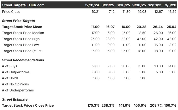 El precio objetivo de consenso de Street de 25,94 dólares representa una atractiva rentabilidad potencial del 69,7% desde la base actual de 15,29 dólares.