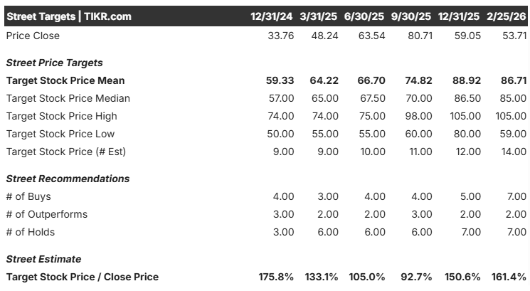 El precio objetivo de consenso de Street, de 86,71 dólares, representa una rentabilidad potencial total significativa del 61,4% desde los niveles actuales.