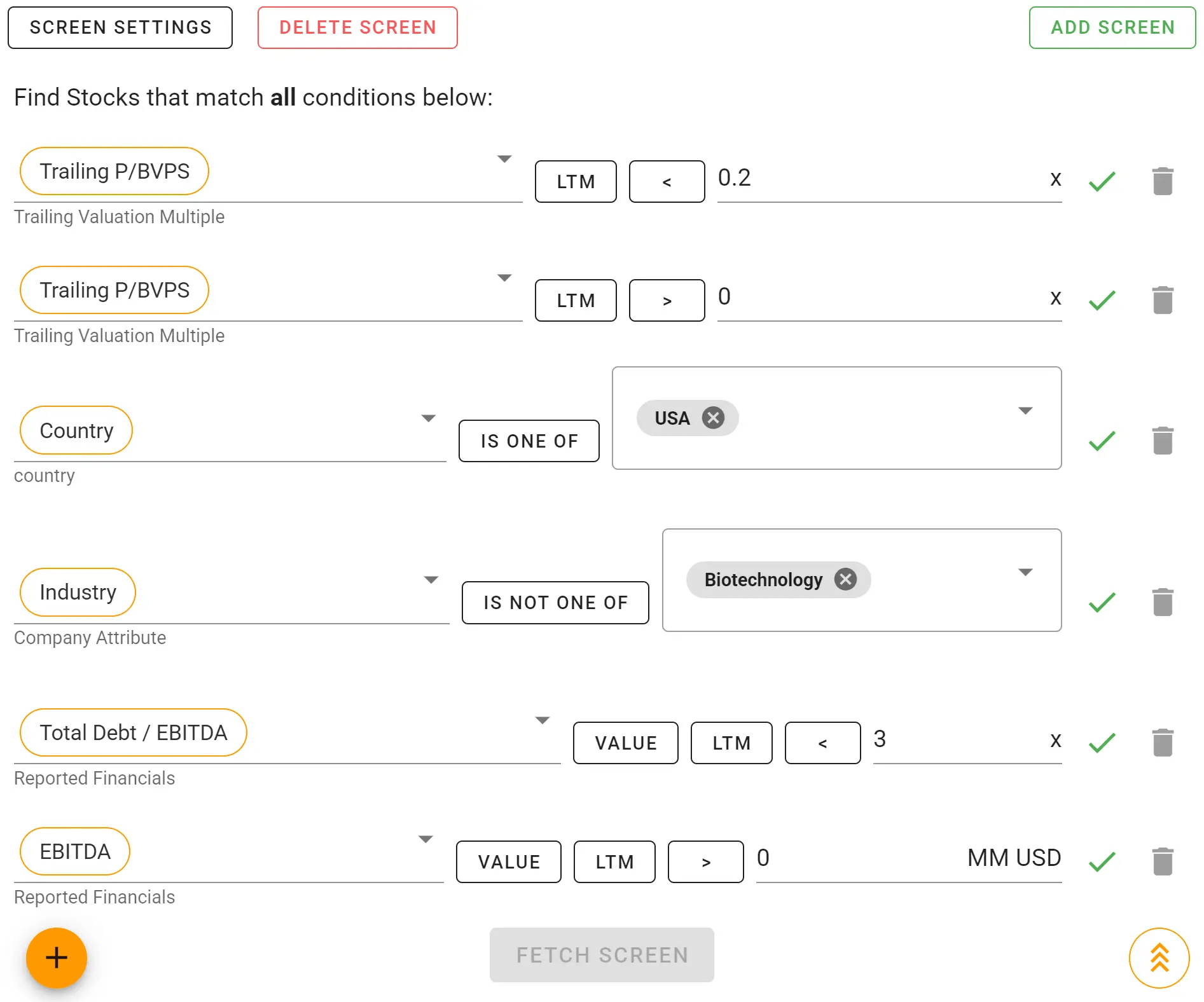 TIKR es uno de los mejores filtros de valores para inversores fundamentales. TIKR permite a los usuarios construir pantallas personalizadas que se adapten a su estilo de inversión único, con pantallas de valores que trabajan con una amplia variedad de métricas.