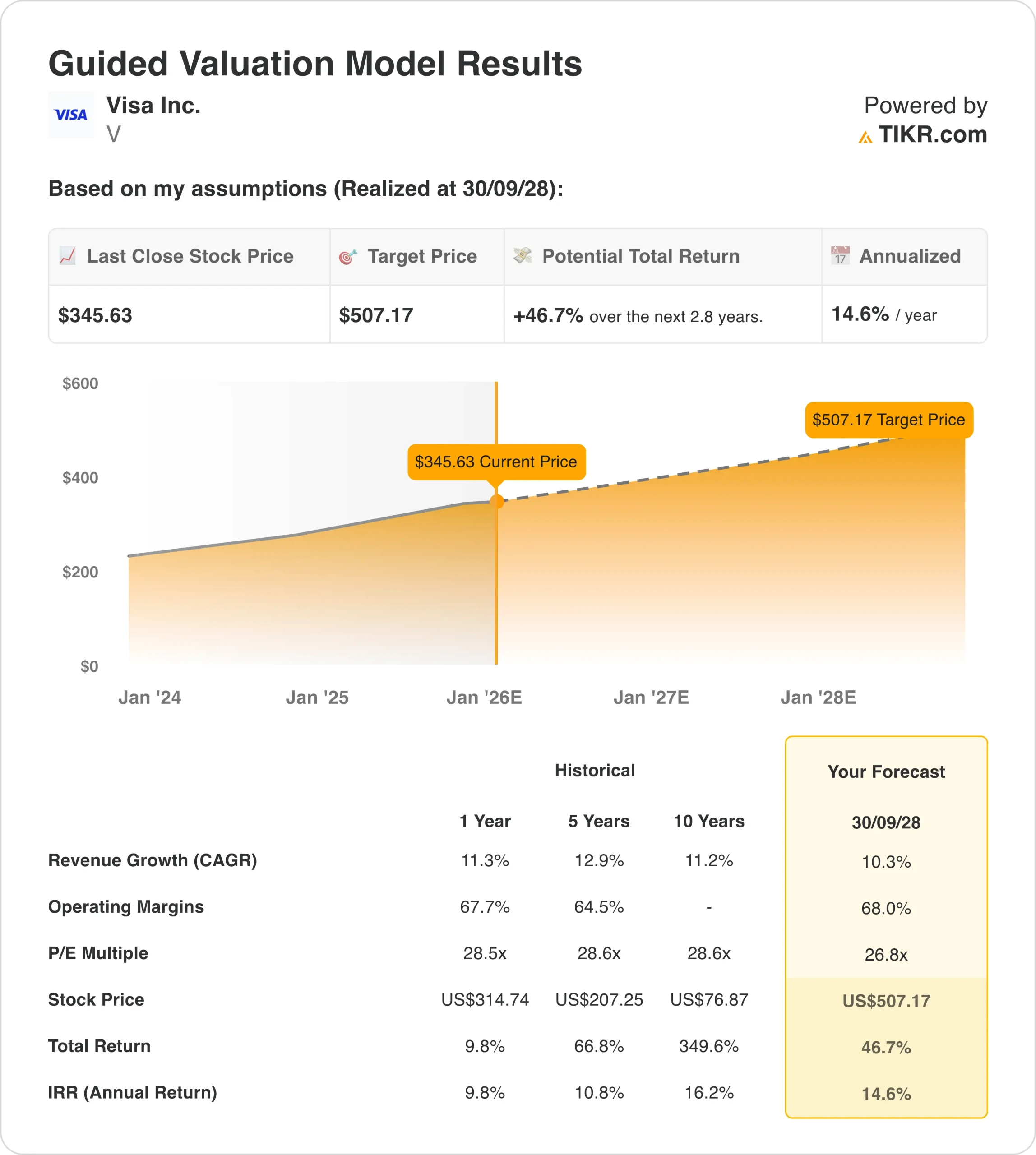 Con la nueva herramienta Modelo de valoración de TIKR, puede estimar el precio potencial de una acción en menos de un minuto.