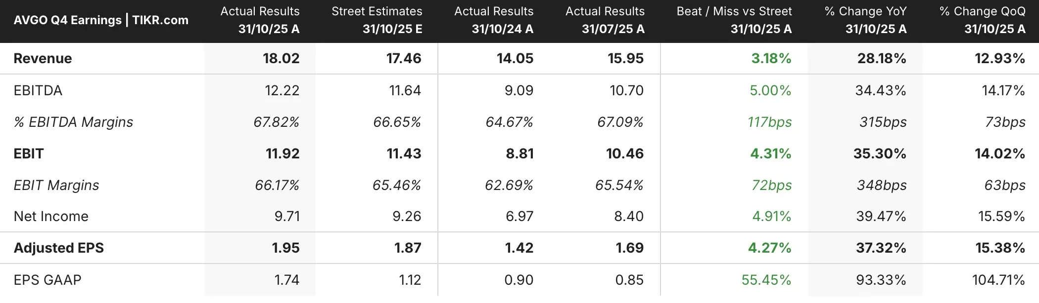 Malgré la baisse des résultats, l'action AVGO reste en hausse de plus de 71 % depuis le début de l'année, la société continuant à capter les dépenses d'IA aux côtés de Nvidia.