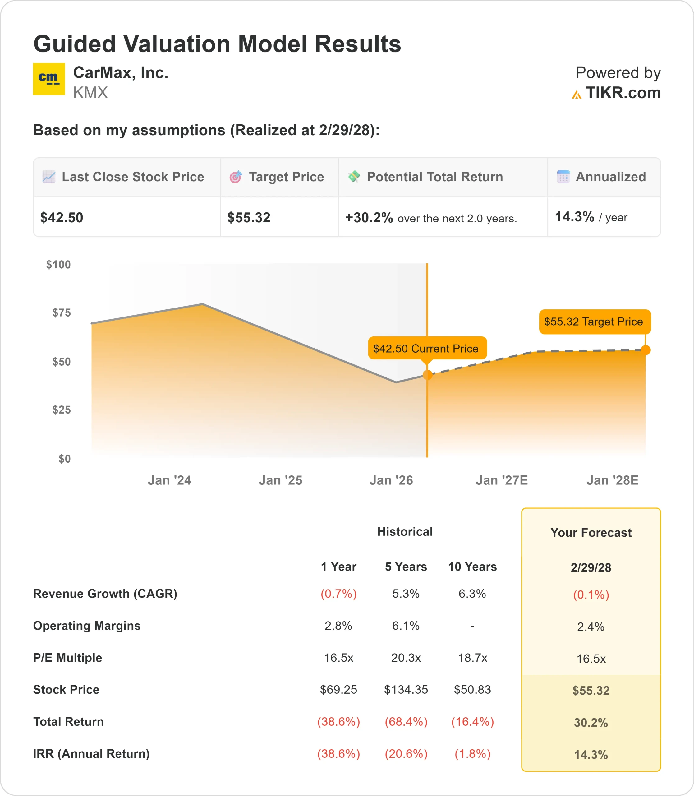 Quelle est l'ampleur de la hausse de l'action CarMax à partir de maintenant ?
