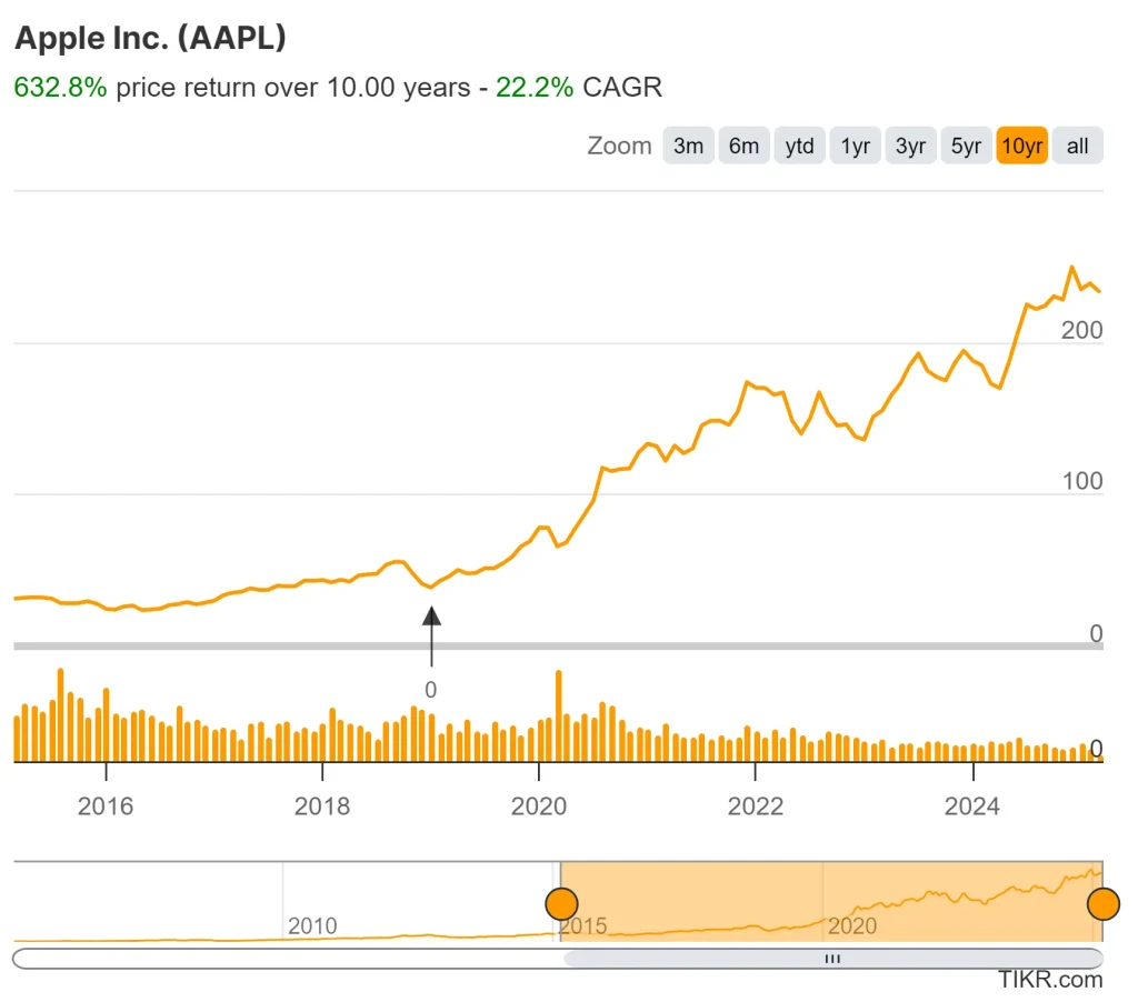 Par exemple, Apple a chuté de près de 40 % en 2018 en raison des craintes de ralentissement des ventes d’iPhone. Les investisseurs qui ont tenu bon ont vu l’action plus que tripler au cours des cinq années suivantes. Une baisse à court terme ne signifie pas que les fondamentaux d’une entreprise ont changé.