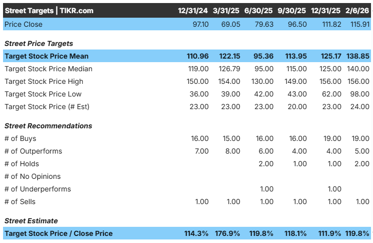 - Prix cible : 139