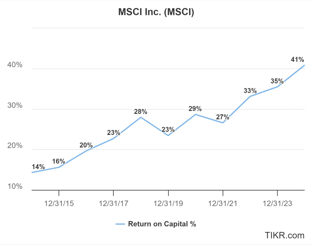 - MSCI (MSCI ) exploite une entreprise de données et de notation de crédit à marge élevée qui ne nécessite que très peu de réinvestissement. Leur excellent RCI reflète l’efficacité avec laquelle ils réalisent des bénéfices importants sur le capital investi dans l’entreprise.