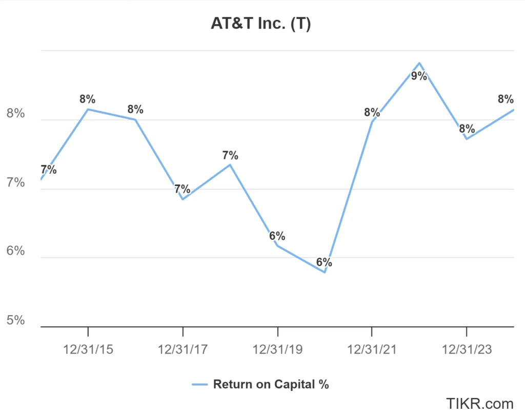- AT&T (T) est lourdement endettée et dépense des milliards en infrastructures, mais son faible RCI montre que ces investissements ne génèrent qu’un faible profit économique.
