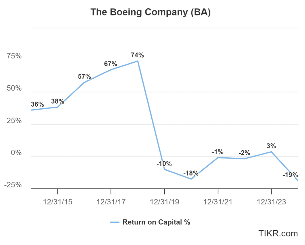 - Boeing (BA) a souffert de retards de production, de problèmes de qualité et d’une augmentation des coûts. Son faible RCI reflète la difficulté de transformer son énorme capital en bénéfices réguliers.