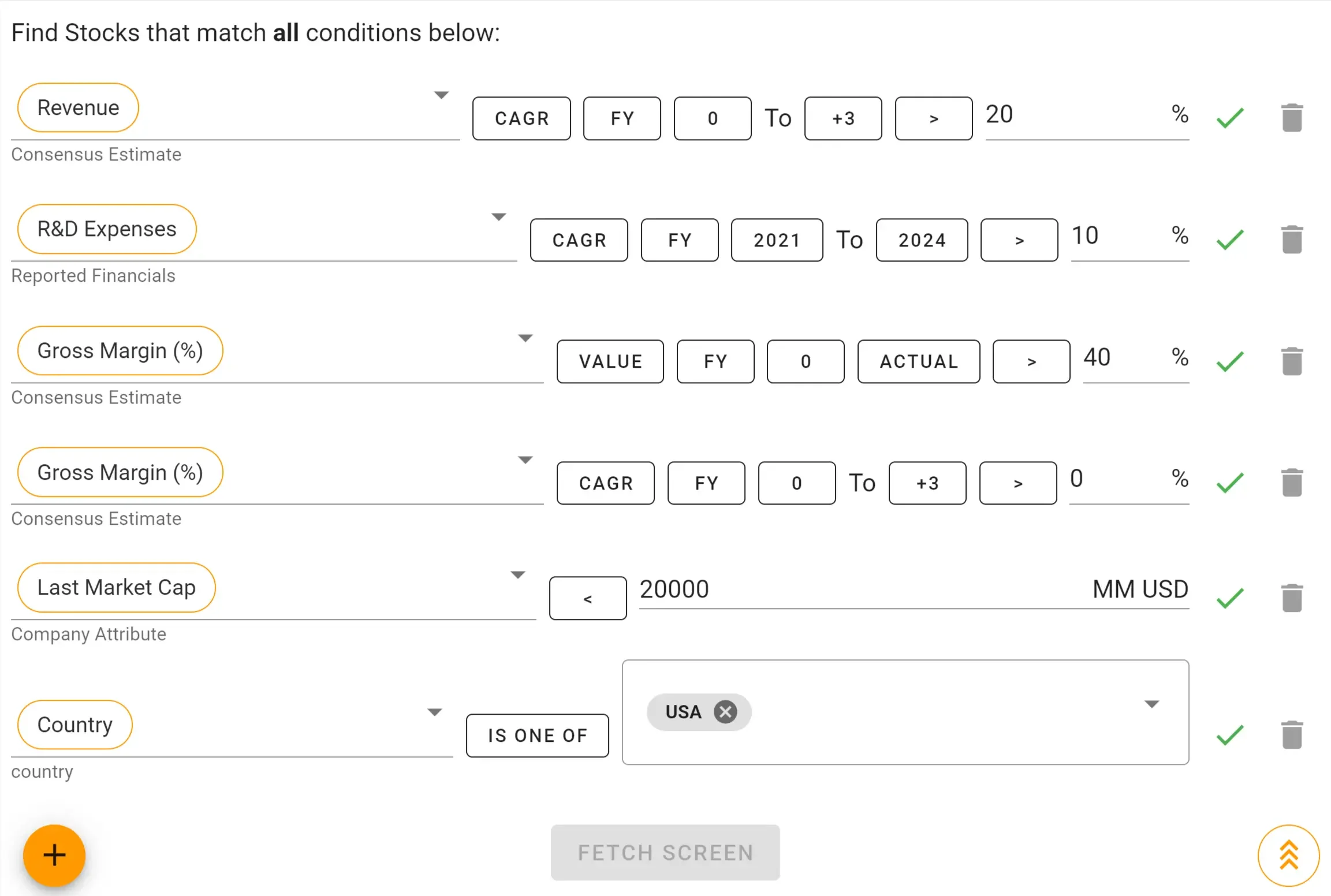 I vagli azionari consentono di risparmiare tempo concentrandosi solo sulle società che corrispondono alle proprie preferenze. Invece di dover cercare in decine di rapporti sui titoli, potete generare una lista di controllo personalizzata in pochi secondi.